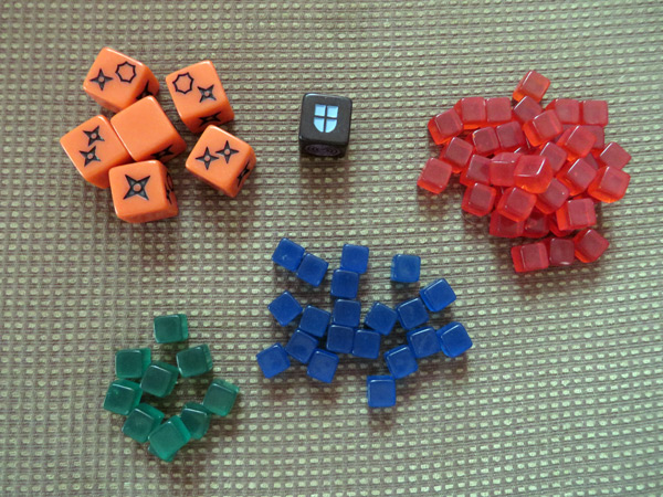 In diesem findet sich das Spielmaterial in einem mehrfach aufgeteilten Kunststoffinlay – das Inlay ist recht dünnwändig – lose wieder, für die Kunststoffmarker liegen allerdings kleine Zipp-Tüten bei und die Figuren sind in einem extra (transparenten) Plastikschuber verpackt. Ein dezenter, chemischer Geruch machte sich beim Öffnen breit, der aber alsbald verflog!