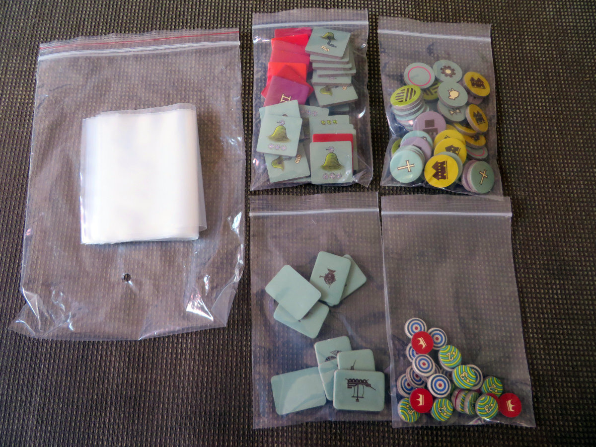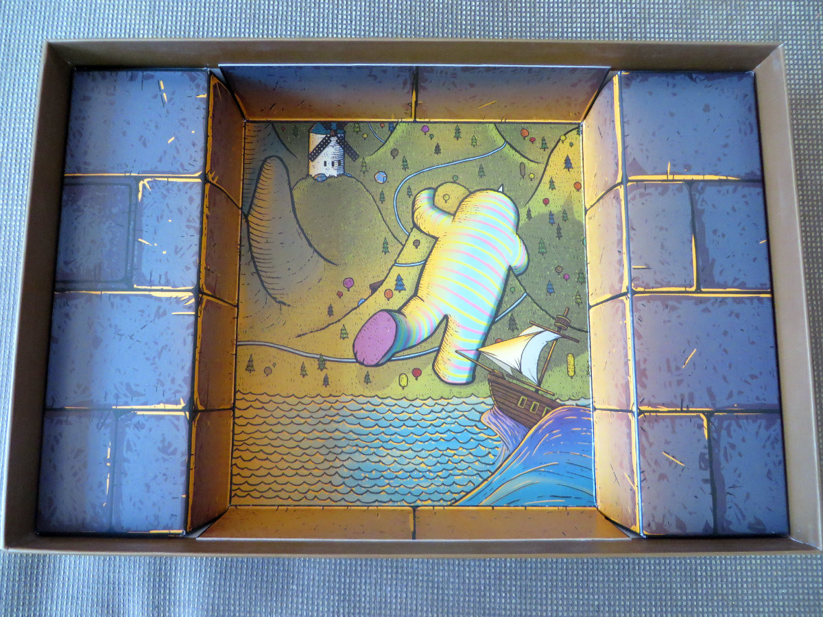 Das Spiel kommt von Odd Bird Games und ist in einem rechteckigen, stabilen und gewichtigen Karton mit spielthematischer Abbildung verpackt. In diesem findet sich das reichhaltige Spielmaterial zwar lose in einem einfachen, aber in tollem Spieldesign gestalteten Papp-Inlay wieder, es liegen aber massig Zipp-Tüten bei, um alles praktisch zu verräumen. Das Spielmaterial macht einen sehr wertigen Eindruck und passt sich mit dem konsequent eigenwilligen Grafikstil dem generellen Spieleindruck gut an.