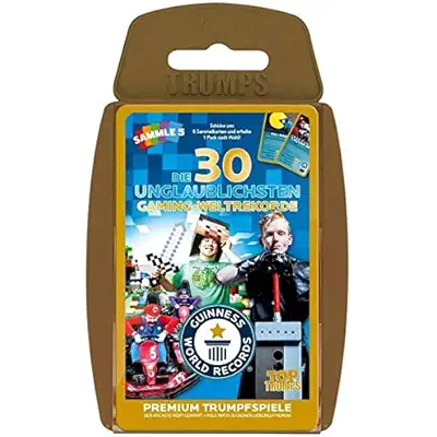Dieses Quartett von Top Trumps bringt den Spielern Rekorde aus dem berühmt-berüchtigten Guinness Buch der Weltrekorde auf Spielkarten näher und zwar rund um das Thema „Gaming“. Darunter finden sich dann so unglaubliche Rekorde, wie z.B. „die älteste Streaming-Gamerin“, „das schnellste, BLINDE Durchspielen von Super Mario World“, „die höchste Punktzahl bei Angry Birds“, „der größte Videogame-Controller“, „der größte, selbstgebaute Gameboy“, u.v.a. wieder.