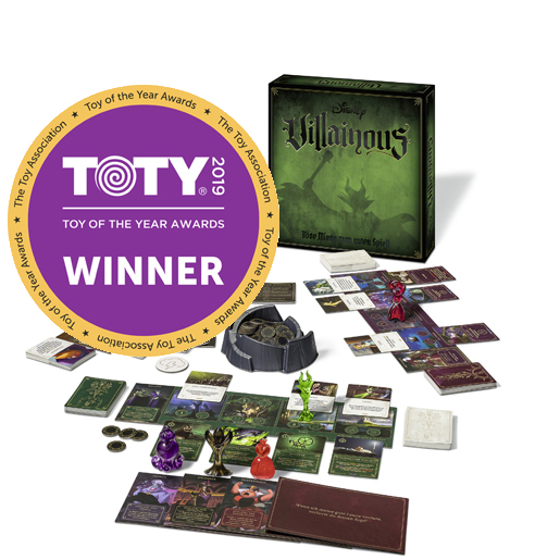Disney Villainous ist das „Toy of the Year 2019“ in der Kategorie „Games“. Die auch als Oskars der Spielwarenbranche bekannten „Toy of the Year Awards“ werden jährlich vom amerikanischen Branchenverband „The Toy Association“ im Rahmen der North American International Toy Fair im Februar in New York vergeben. Das Spiel war bereits im August 2018 in den USA erschienen und dort auf große Resonanz gestoßen.