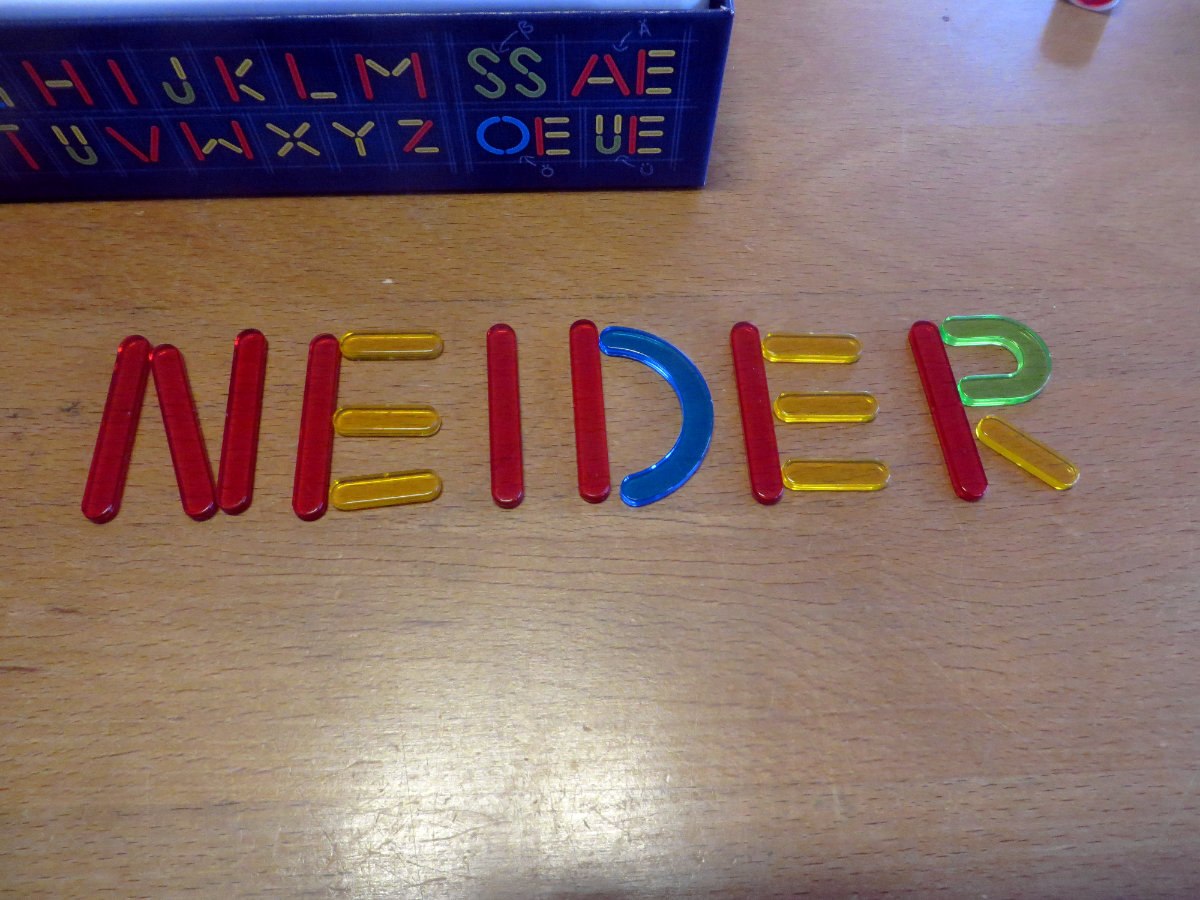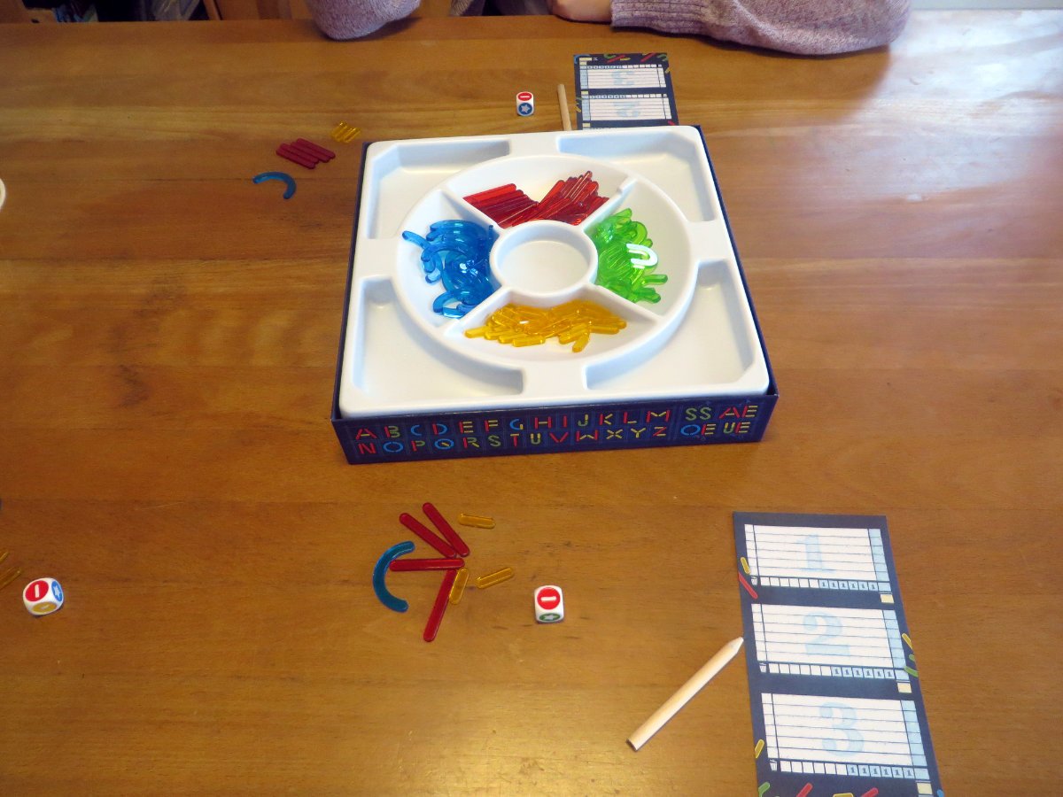 Sobald die Runde läuft, beginnt das kreative Chaos. Man baut, probiert, dreht Teile, verwirft Ideen und ruft plötzlich ein Wort aus, das man gerade erfolgreich gelegt hat. Dieses Wort muss korrekt gebaut vor einem liegen, gut lesbar für alle. Dann buchstabiert man es laut und die Mitspieler haben die Möglichkeit, Einspruch zu erheben. Ist das Wort gültig? Wurde es nicht schon in dieser Runde verwendet? Entspricht es der Alphabet-Bauübersicht? Wenn niemand protestiert, wird es notiert und die verwendeten Teile bleiben vor einem liegen. Nicht benötigte Teile werden später abgeworfen.