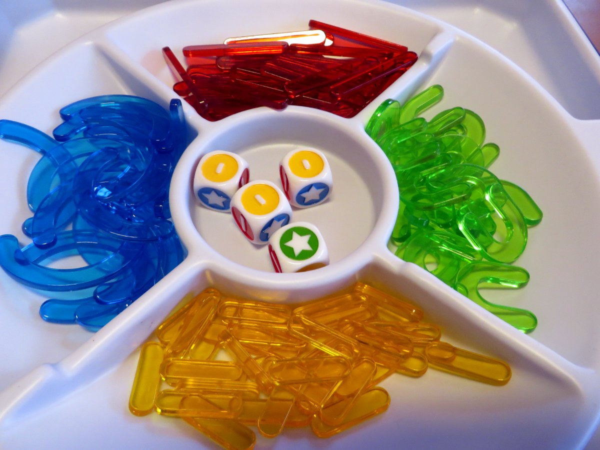 Neue Teile erhält man jederzeit, indem man seinen persönlichen Würfel wirft. Zeigt er ein Symbol, nimmt man sich das entsprechende Teil. Würfelt man einen Joker, darf man sich sogar ein beliebiges Teil aussuchen – ein mächtiges Werkzeug, das aber auch taktisch eingesetzt werden will. Denn jedes abgeworfene Teil kostet Bonusfelder und wer zu viele davon streicht, verliert wertvolle Punkte – alle Teile, die man beim Sichern eines Wortes nicht benutzt hat werden abgeworfen. Nach zwölf abgeworfenen Teilen wird es richtig eng. Ab dann müssen alle eigenen Teile in jedem neuen Wort verwendet werden.