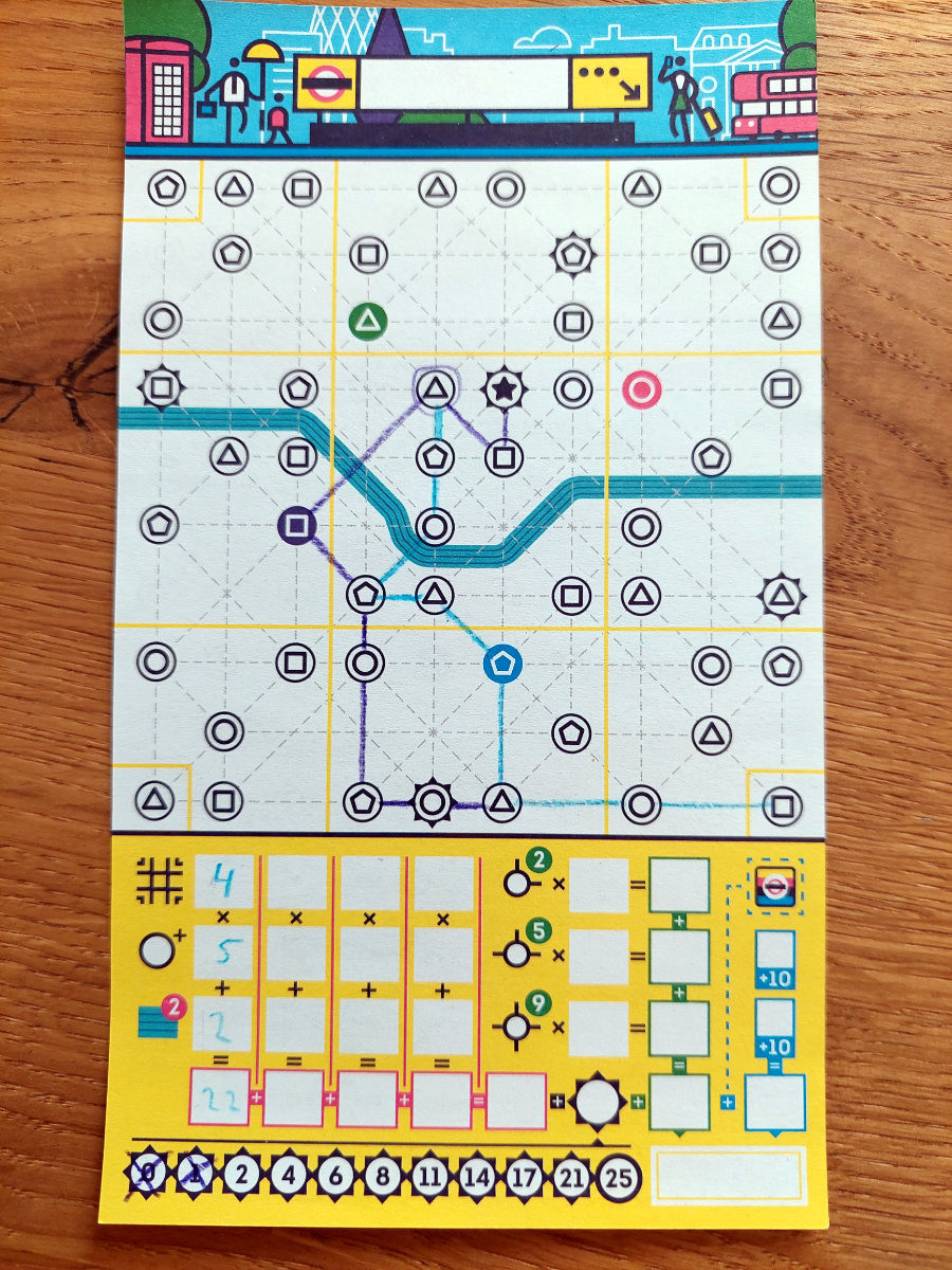 Review-Fazit zu „Next Station: London“, einem strategischen Flip’n’Write.
