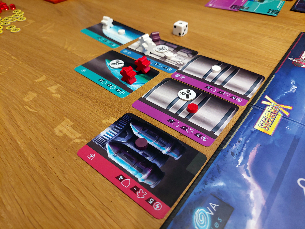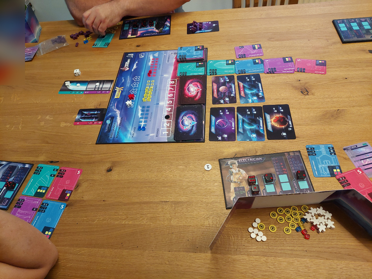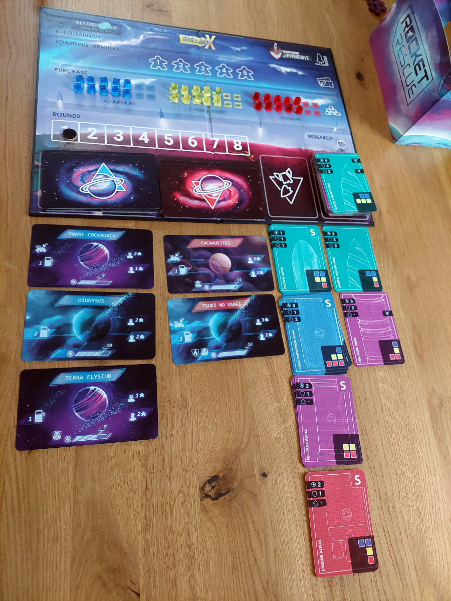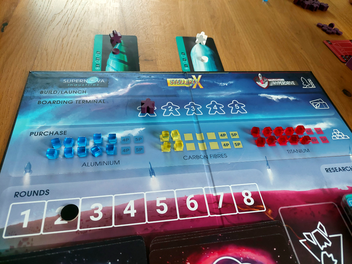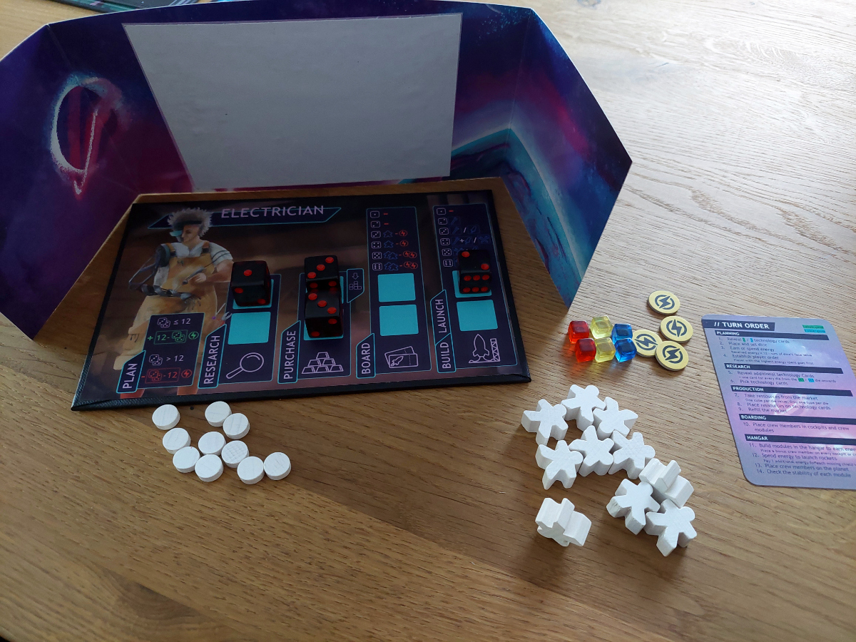 Die nächste Phase befasst sich mit dem Markt, auf dem Titan, Aluminium und Karbonfasern gekauft werden können, um die Raketenteile überhaupt bauen zu können. Das Prozedere ist in allen Phasen gleich und richtet sich nach den gelegten Würfelaugen. Danach folgt die Phase zur Bestimmung wie viele Passagiere geladen werden können und abschließend die Bau- und Startphase.