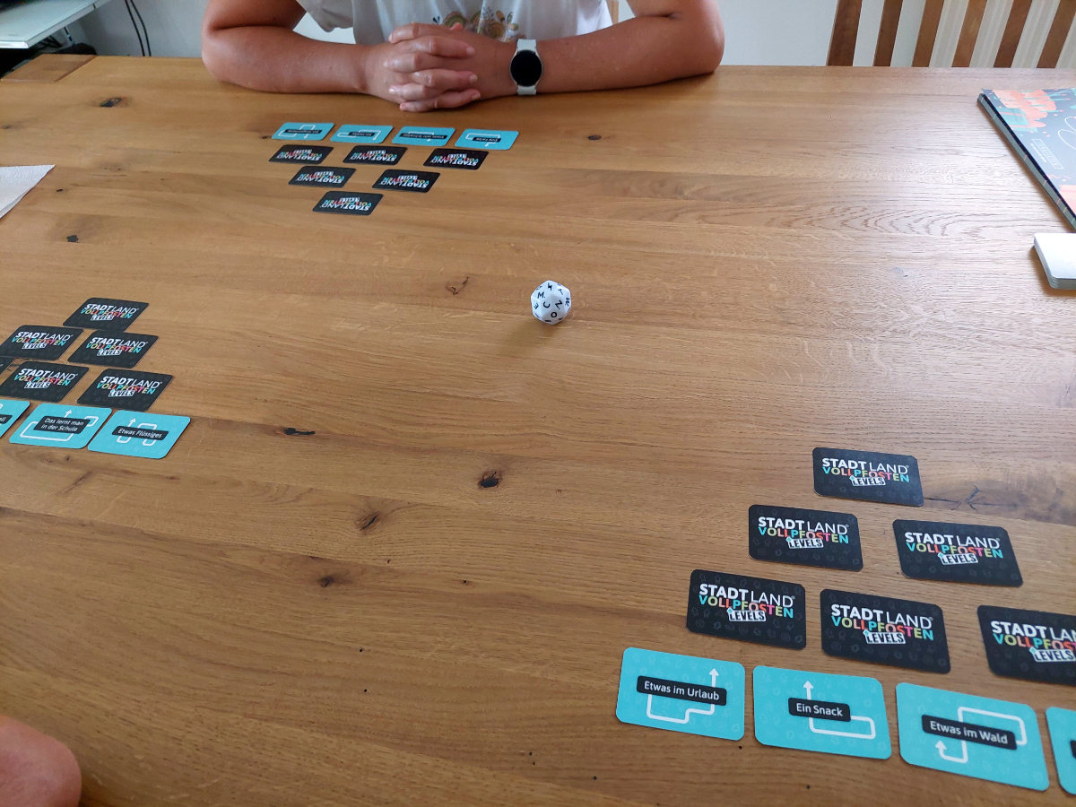 Bei allen Zügen gilt es immer der Schnellste zu sein, um weiter zu kommen. So kommt es oft vor, dass jemand schon in Level 2 oder 3 ist, während andere noch in Level 1 oder 2 rumdümpeln. Käme es zu einem Stechen, weil mehrere Spieler ziemlich gleich schnell waren, wird für diese der Würfel erneut geworfen und sie müssen nochmal zu der zuvor gewählten schnell eine Antwort geben. Wer nun schneller ist, „gewinnt“ diesen Zug für sich.
