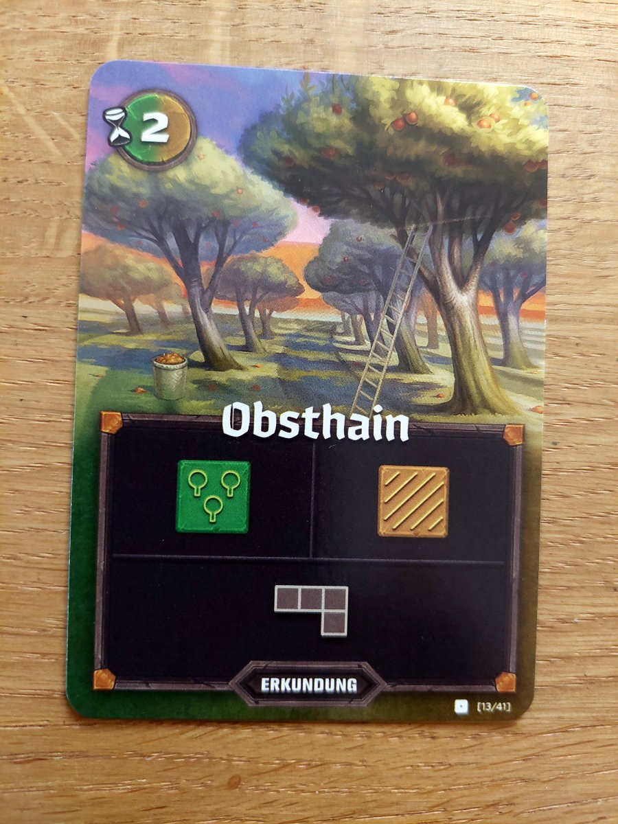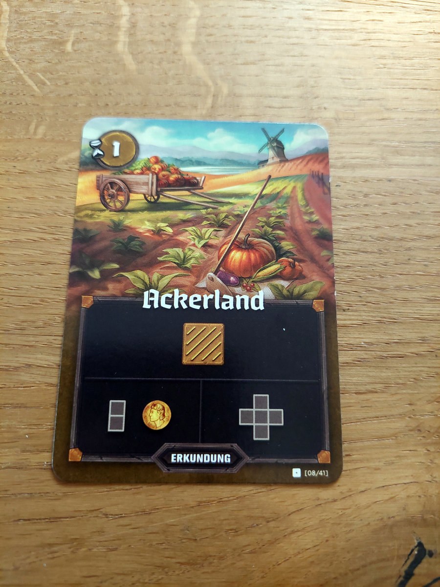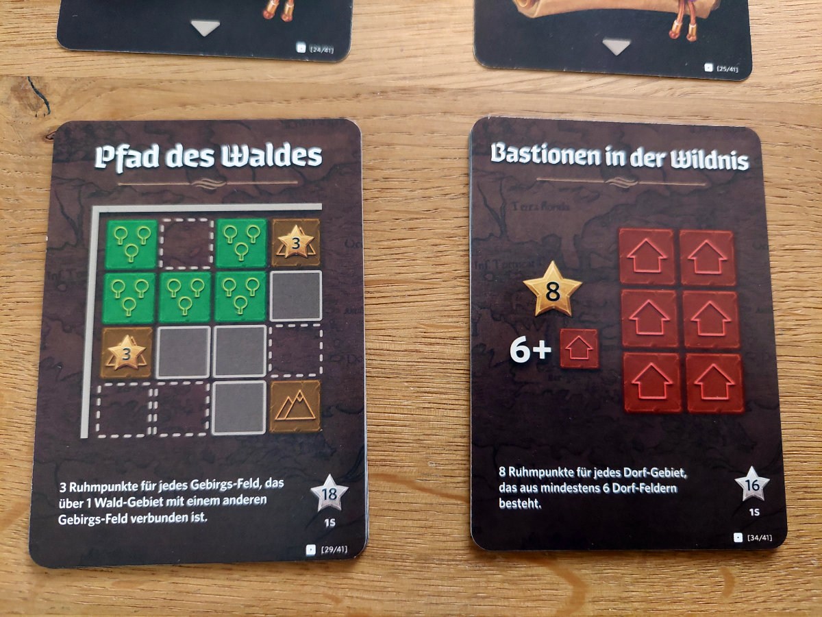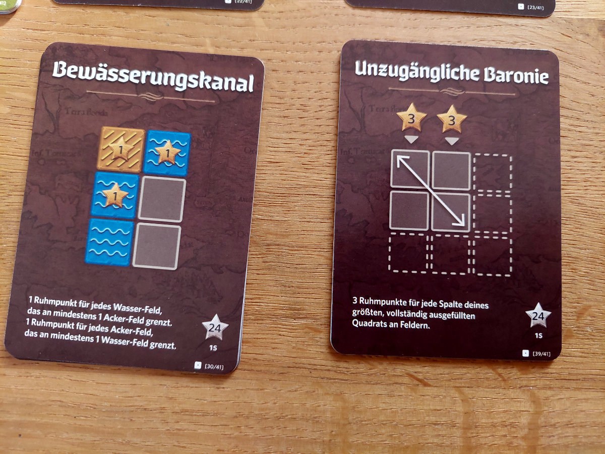 Pro Zug wird eine Karte aufgedeckt, die ein bis zwei Landschaftstypen und/oder ein bis zwei Landschaftsformen (Tetris^^) anzeigt. Diese muss dann eingezeichnet werden, indem man sich für eine Form entscheidet und sie mit einem der Landschaftstypen „füllt“. Gelegentlich gibt es auch 1er-Feld-Formen, die dann eine Münze mit einbringen und Ruinen-Karten, die eine weitere gezogene Karte erwarten und deren Form muss dann über eine der vorgedruckten Ruinenfelder gezeichnet werden.