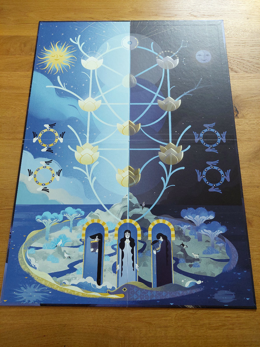 Diese Edition ist eine verbesserte Fortführung des Originals („Sefirot“) mit verschlankten Regeln, noch schickeren Komponenten und zusätzlichem Spielmodus. Es sieht sehr hübsch aus und bietet durch die Tarotkarten und deren Illustrationen schon ein entspanntes Spielgefühl. Weniger dagegen die Anleitung, welche, trotz der Prämisse sehr leichter Regeln, den Zugang unnötig verkompliziert. Spielverlauf und -mechanik sind dann auch eher für hartgesottene Fans gedacht, denn zum meditativen Spielen für jedermann.