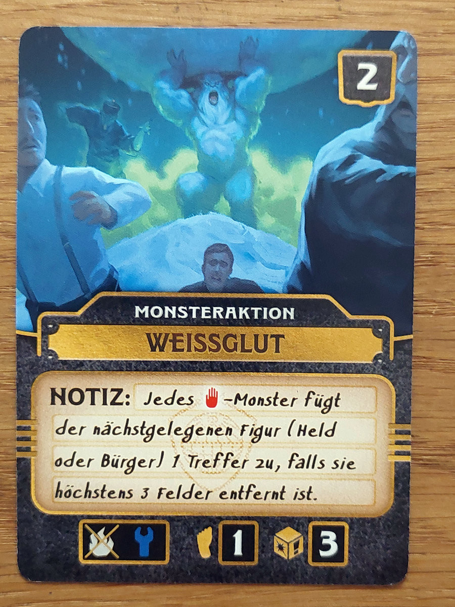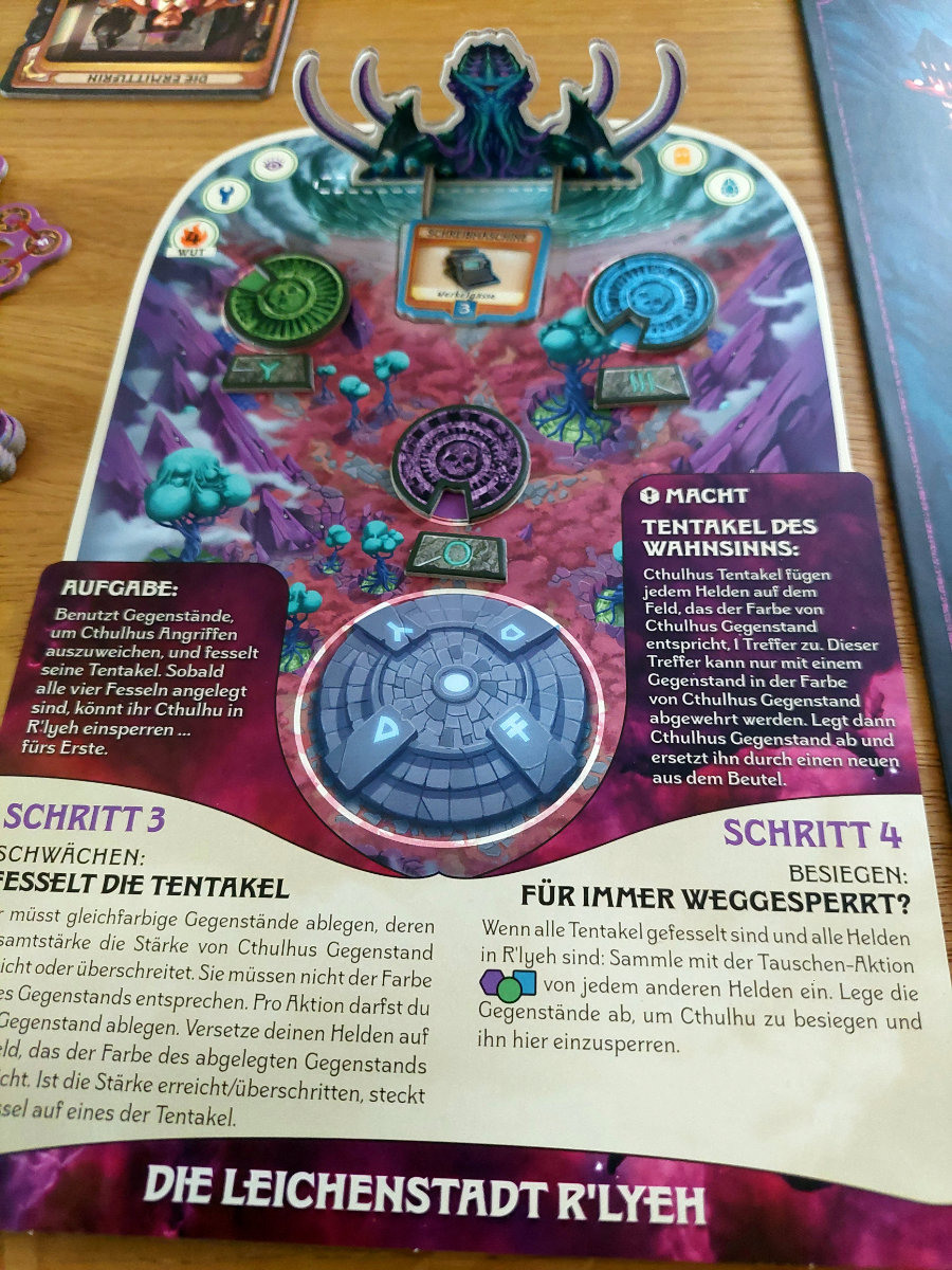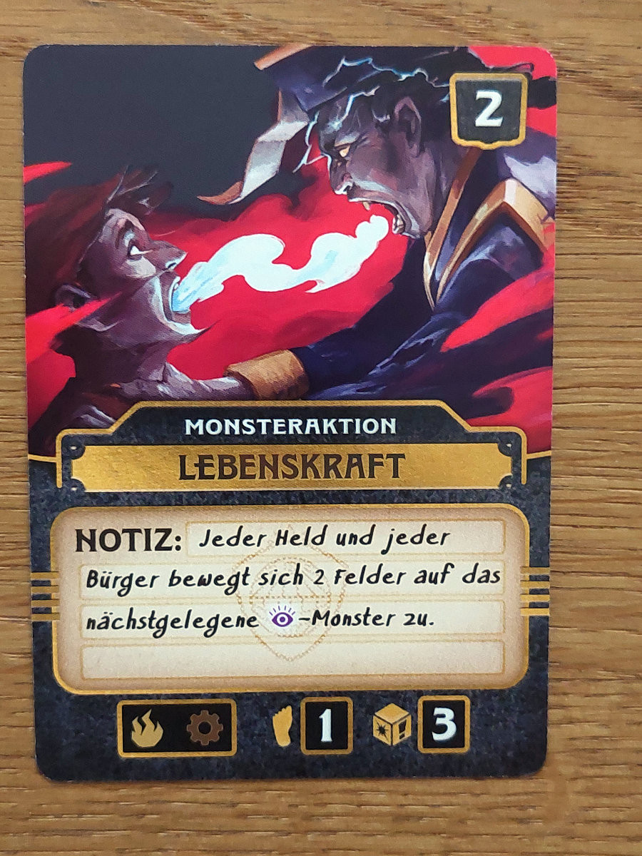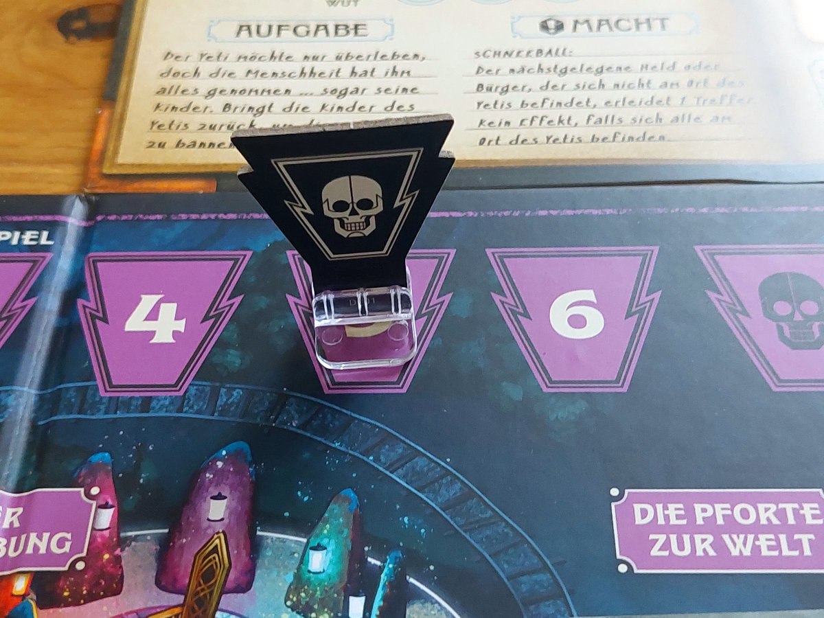 Gewonnen wird schließlich, wenn alle Monster besiegt wurden und verloren wird, wenn der Marker auf der Furchtleiste das Ende erreicht.