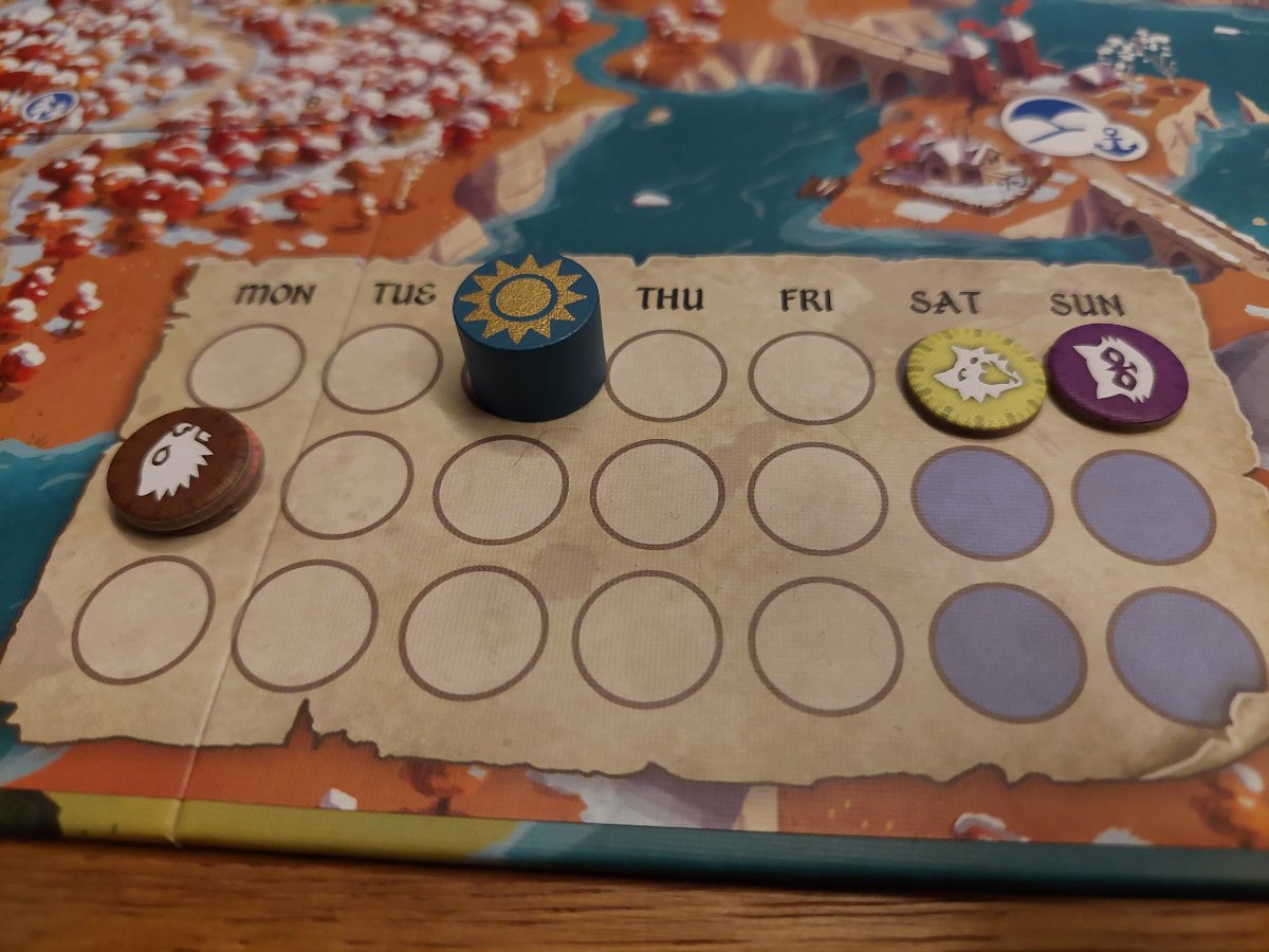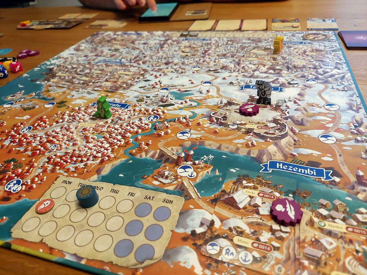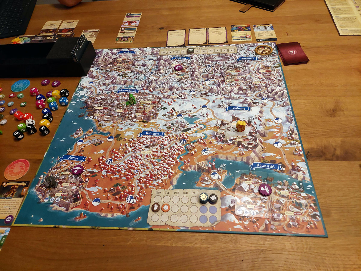 Der Spielplan zeigt die Welt in der sich die Spielercharaktere bewegen in einem sonnigen und rückseitig einem verschneiten Zustand. Je nachdem in welcher Saison man sich im Spiel befindet, wählt man die entsprechende Planseite. Die Orte auf dem Plan werden durch Karten dargestellt, welche im Verlauf des Spiels durchaus ausgetauscht werden können und dann gänzlich anderes aufzeigen.