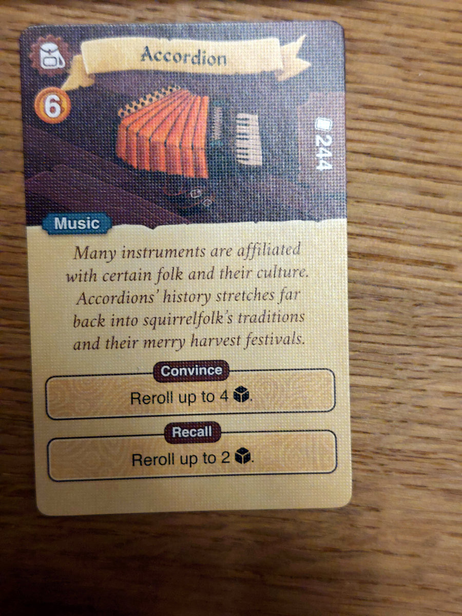 Die Charaktere der Spieler (allesamt an dem tierischen Universum der „Dale of Merchants“-Reihe angelehnt) werden durch Spielertafeln repräsentiert, die neben Statistiken und Infos vor allem ihre jeweiligen Fähigkeiten für spezielle Tests darstellen (Attribute wie: Wahrnehmung, Geschicklichkeit etc.). Quasi alle Entscheidungen im Spiel werden durch Würfel gestützt und die Standardwürfel zeigen auf ihren Seiten jeweils nur eines der sechs Attributssymbole. Ist ein Charakter aber in einem verlangten Attribut besonders gut (angezeigt durch auf der Tafel eingesteckte halbrunde Plastikmarker), kann er einige der Standardwürfel gegen passend farbige Würfel tauschen, die mehr von den verlangten Symbolen auf ihren Seiten vereinen. Dadurch verhilft man dem Würfelglück etwas auf die Sprünge, wobei es natürlich immer noch zu Fehlwürfen kommen kann – diese können unter Umständen aber nochmals durch Boni verändert werden.