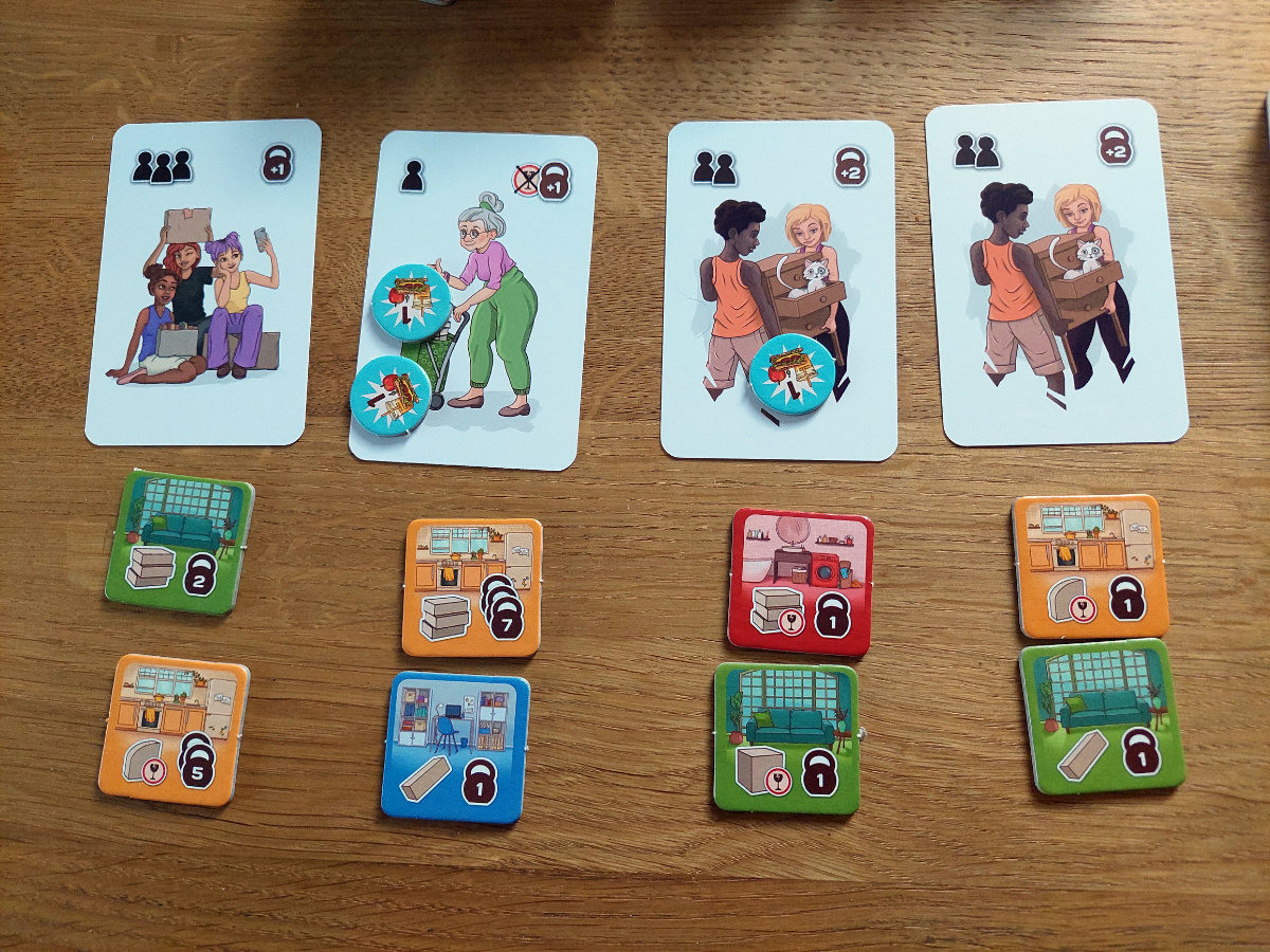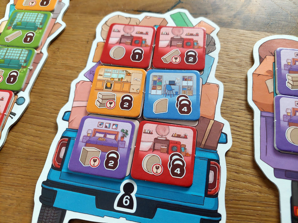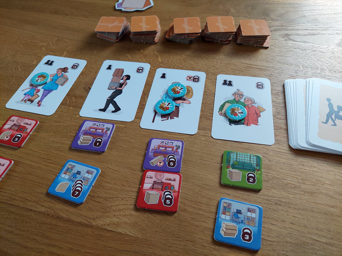 Dieses kurzweilige Familienspiel macht viel Freude und bietet sich für jedwede Besetzung an. Das Knobeln um die beste Platzierung versus dem Glück/Pech die nötigen Plättchen und Karten zu erhalten bringt spaßige und herausfordernde (Wiederspiel-)Motivation. Der Zugang ist zudem simpel, die Spielkomponenten schick und wertig produziert und die Spieldauer ist mit ca. 25min. (im Schnitt) sehr angenehm. Das Spiel schafft es gar die Umzugsimmersion realistisch zu transportieren^^ und so fühlt man sich rasch „wie mittendrin“. Ein sehr feines Spiel!