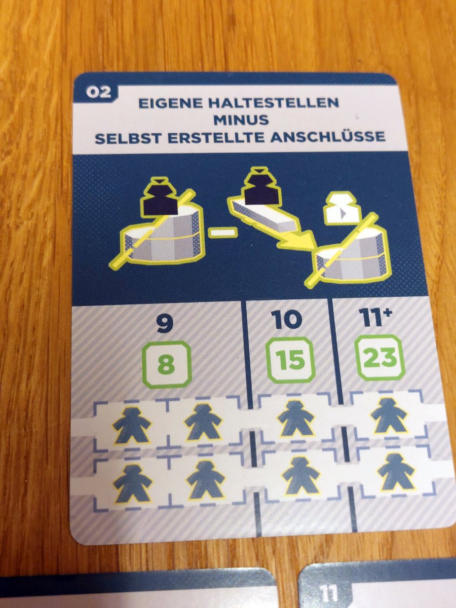 Die Endabrechnung berücksichtigt gebaute Stationen und Bahnhöfe bei entsprechenden Nachbarschaften zu Quartieren, Beteiligungen an öffentlichen Projekten, das Erfüllen privater Ziele (oft bezogen auf bestimmte Stadtviertel), gesammelte Bedarfsmarker und für je 4 Münzen gibt es 1 Prestige.