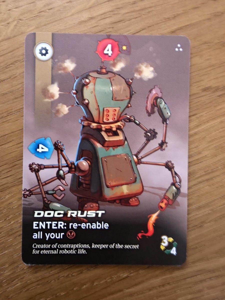 Review-Fazit zu „Rumblebots“, Deckbau nach Videospiel-Art.