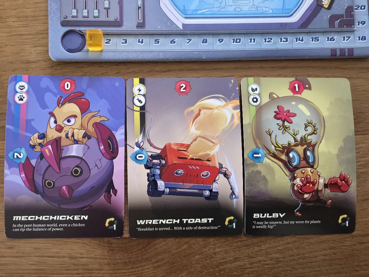 Über 6 Runden müssen die Spieler bauen und kämpfen. In der menschenleeren Welt, in der nur noch Pflanzen, Tiere und intelligente Maschinen hausen, gilt nur noch eins: der Stärkere überlebt!