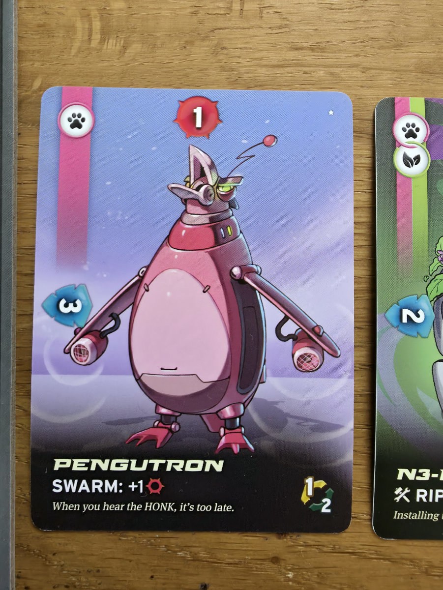 Im Falle eines Angriffs werden Angriffs- und Verteidigungswert der Kontrahenten verglichen und wenn die Angriffsstärke nicht ausreicht, muss eine weitere Karte aufgedeckt werden, so lange, bis die Verteidigung durchbrochen wird. Gelingt dies, muss der angegriffene Spieler seine Karte(n) ablegen. Der Sieger schaut sich seine genutzten Karten an und darf sich entscheiden bestimmte Karten zur Verteidigung zu behalten und zwar alle Karten, die über mindestens ein gleiches Symbol (Tier, Maschine, Bot etc.) verfügen, den Rest wirft er ab. Der nun folgende Spieler muss dann diese Verteidigung überwinden usw.