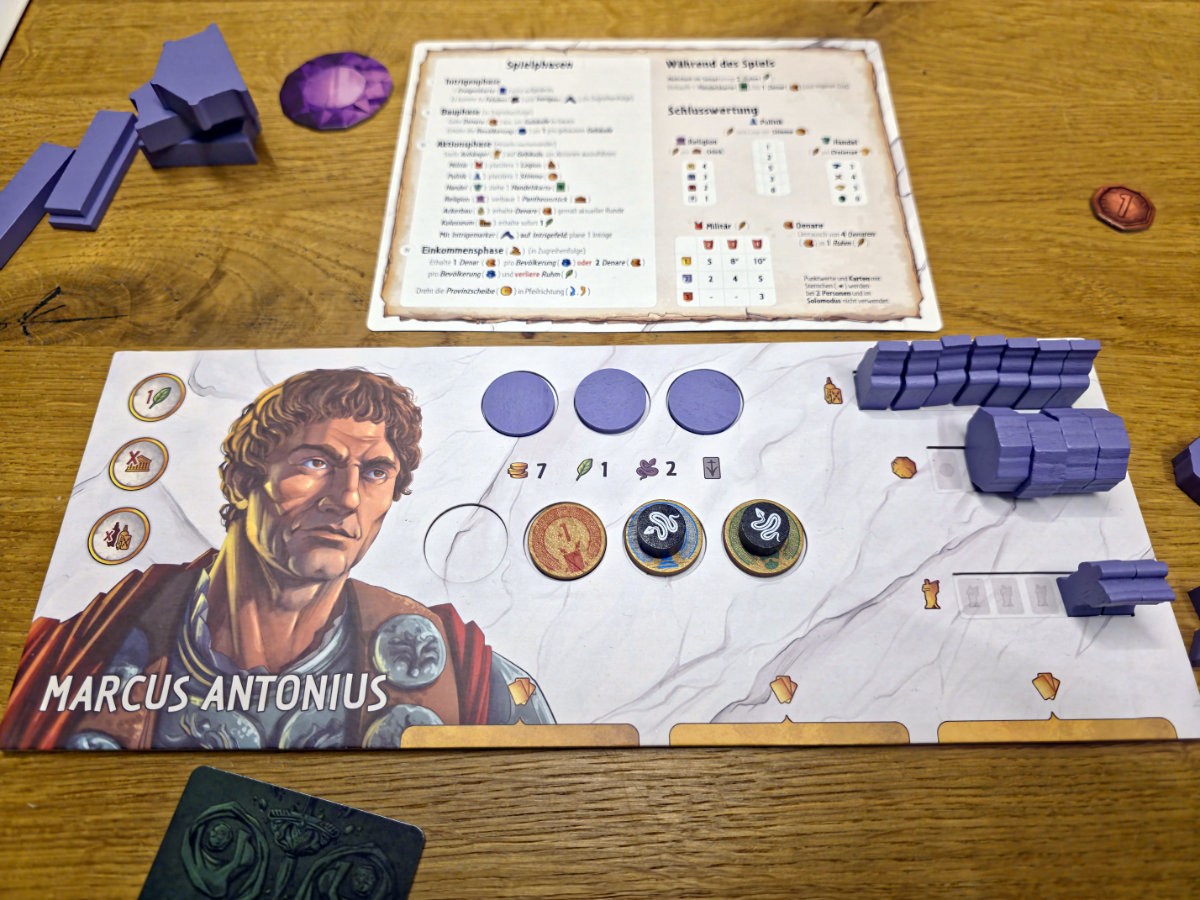 Über 9 Runden mit je 4 Phasen agieren die Spieler also als römische Herrscher in spe und wetteifern um die geschicktesten Taktiken, um zu gewinnen.