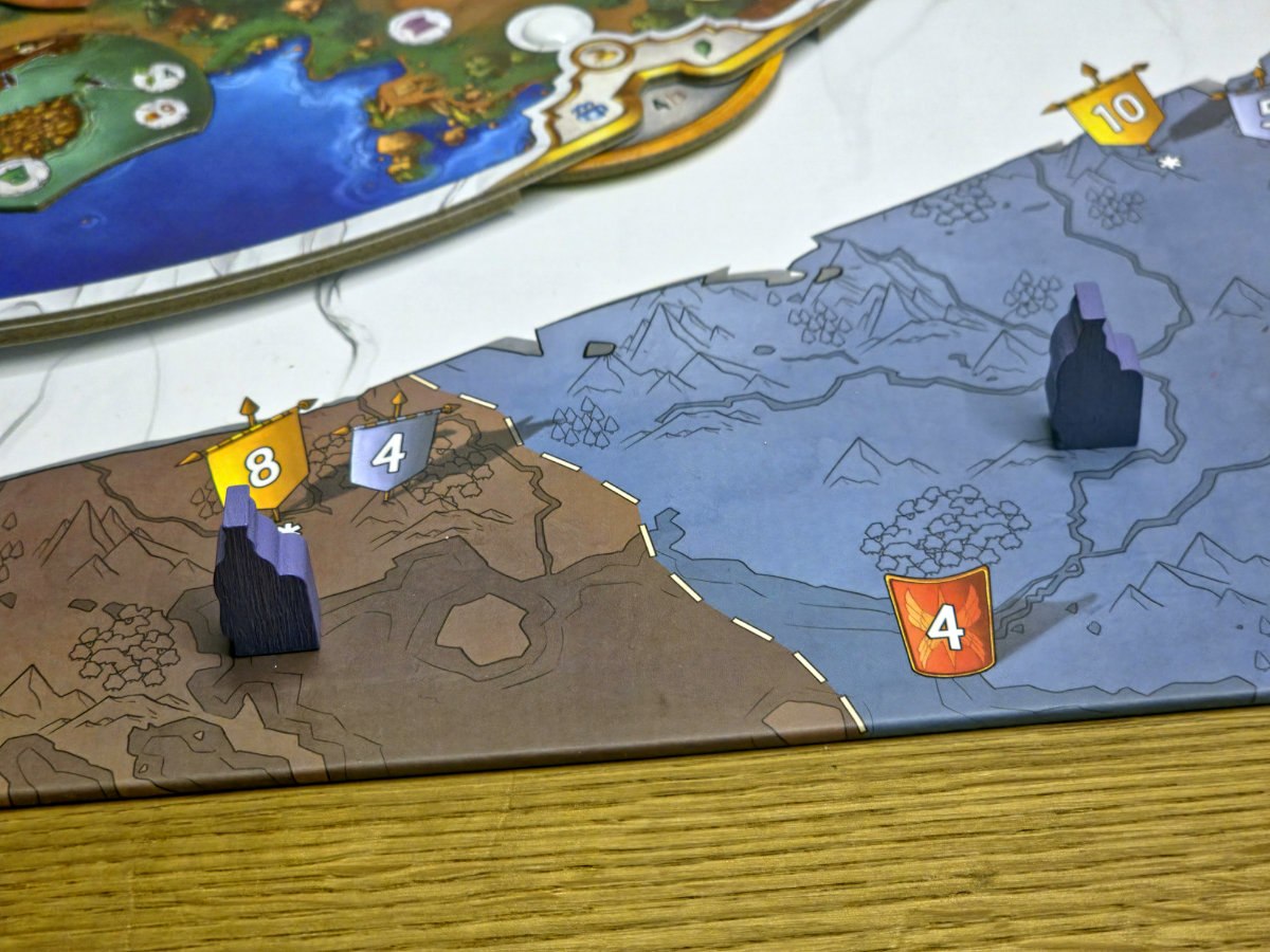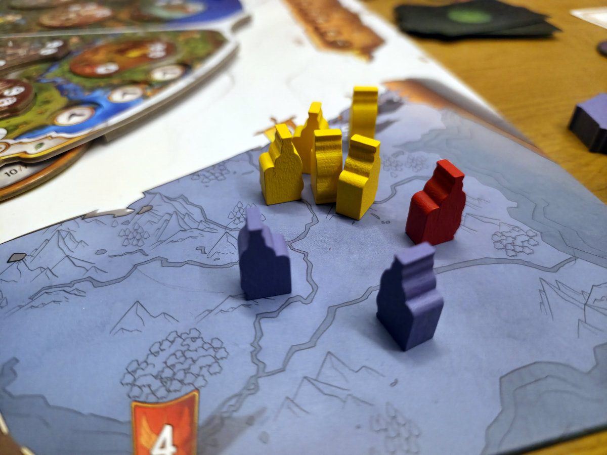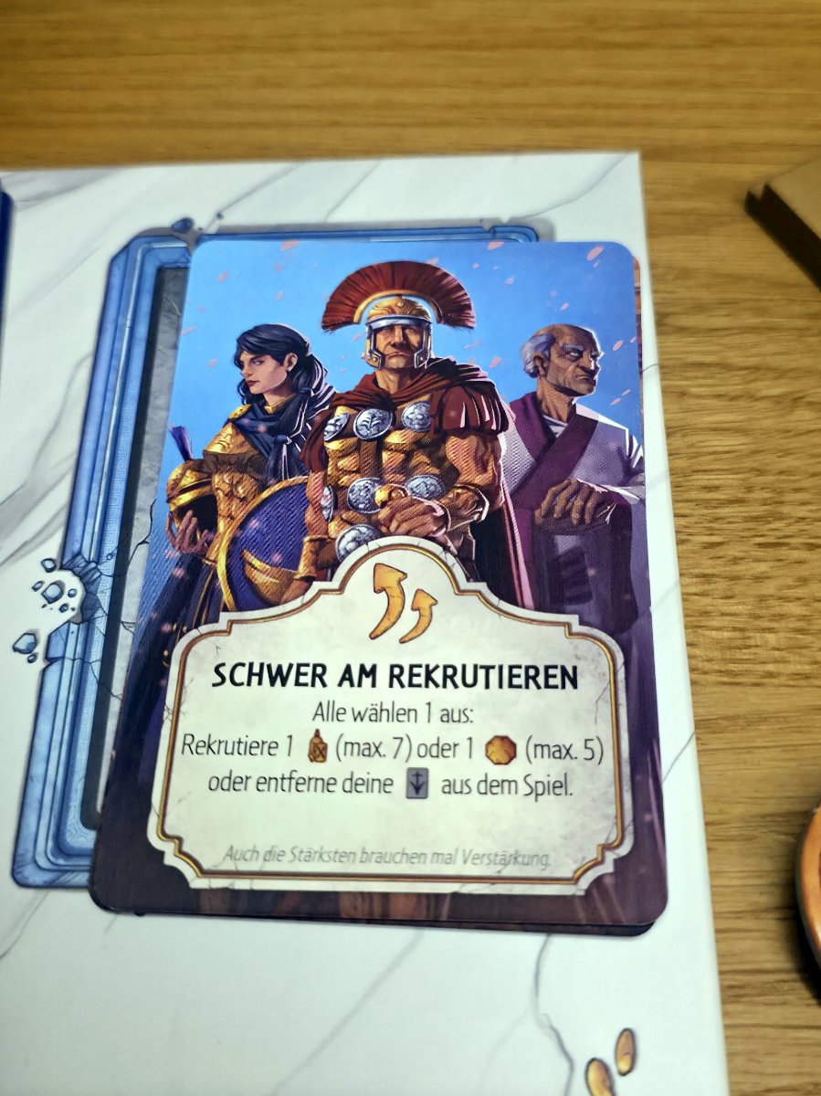Die einzelnen Spielmechaniken sind natürlich nichts Neues, aber in der Kombination wissen sie gut zu unterhalten und fordern die Spieler während der gesamten Partie. Man muss sich fortwährend anpassen können, allerdings muss man auch dabei aufpassen, nicht ins Hintertreffen zu kommen, denn ein Aufholen ist sehr schwer. Auch die Möglichkeit, dass per Zufall die Provinzen so gedreht werden, dass man eher selten an gute Positionen gelangt ist durchaus vorhanden. Da gilt es frustresistent zu sein. Dito bei den Ereignissen oder dem Erhalt von Setkarten.
