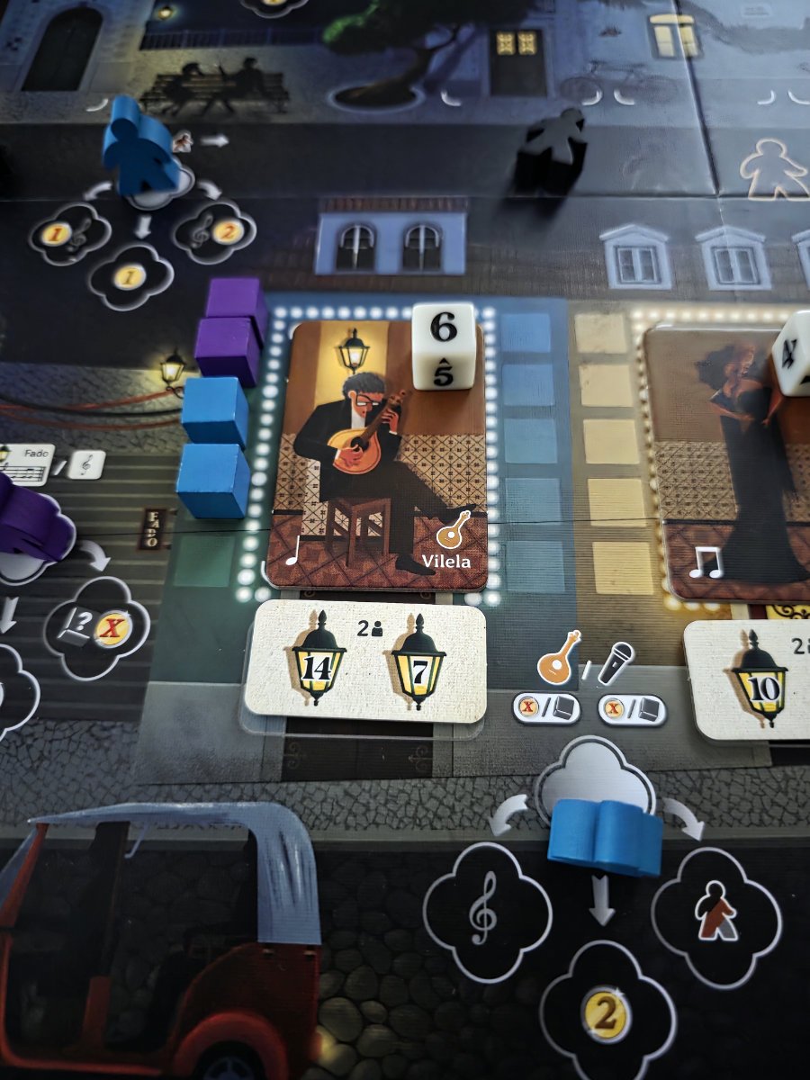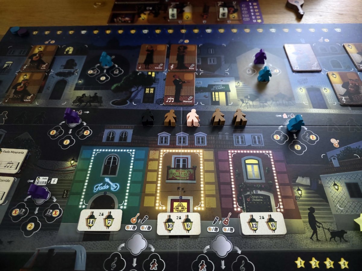 Review-Fazit zu „House of Fado“, einem musikalischen Workerplacement-Spiel.