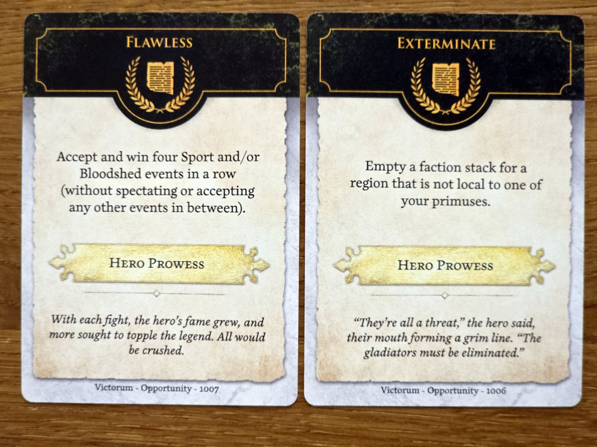 Über 4 Akte hinweg werden 8 Regionen nach und nach erkundet, während der Held sich immer weiter verbessert sowie seine Truppen verstärkt…so denn er soweit überlebt. Das Ziel ist es am Ende eines Aktes den fiesen Scion (Endgegner, z.B. die Hydra) zu besiegen, doch davor müssen noch 3 Primus-Charaktere (nicht gewählte Helden) überwunden werden. Für einen Akt stehen 12 Wochen (Runden) zur Verfügung, in denen der Held die Aufgabe bewältigt haben muss. Hierfür wird sich generell auf der Landkarte bewegt und sich Ort für Ort den dortigen Herausforderungen gestellt, bis man das Ziel erreicht hat. Es gibt sportliche Ereignisse (King of the Hill, Capture the Flag, Duell), Kämpfe bis zum Tod und bescheidene Orte weiterer Möglichkeiten. Erstere lassen besiegte Einheiten die eigene Truppe verstärken und eigene besiegte Soldaten sind „nur“ verwundet. Zweitere bescheren dem Helden bessere Attribute zur Belohnung, aber jedwede besiegte Einheit ist endgültig dahin. Und die dritte Orts-Option bietet zusätzliche Aufgaben feil, denen man sich für Boni widmen kann.