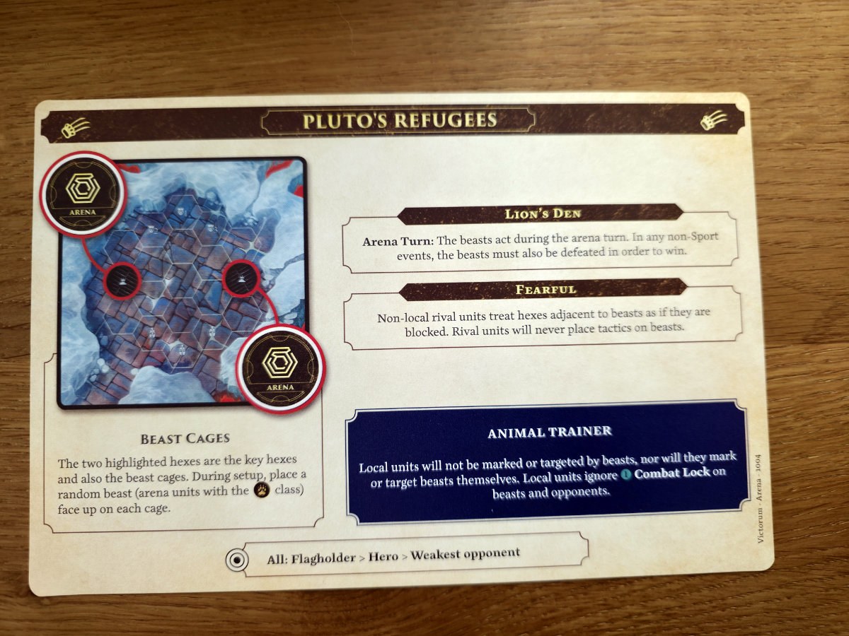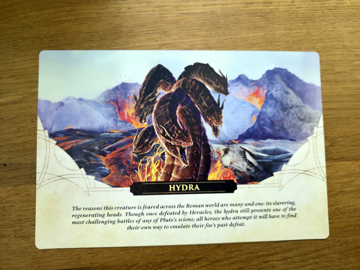 Dieses Spiel aus der „Hoplomachus“-Reihe ist komplett selbstständig spielbar und unabhängig von den anderen Ausgaben. Es nutzt die bekannten Kampfmechaniken und die wertigen Spielkomponenten, bietet aber ein Abenteuer in Kampagnen-Art für ein immersives Solo-Spielerlebnis. Gott Pluto ist sauer, weil die Menschen durch Magie versuchen den Ausbruch des Vulkans Vesuv zu verhindern bzw. zu schmälern. Das geht dem Gott gegen den Strich und er verhängt eine Strafaufgabe, so dass ein Held sich diversen brutalen Aufgaben stellen und sie bestehen muss, ansonsten würden noch katastrophalere Folgen auf die Menschen zukommen.