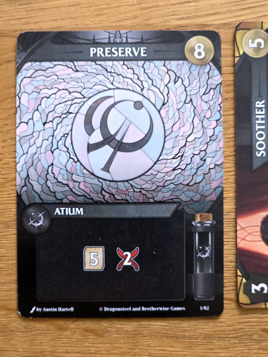 Ein echtes Highlight sind die atemberaubenden Illustrationen. Die Karten zeigen kunstvolle Darstellungen der Charaktere, Orte und Metalle Scadrials – oft im Stil von Buntglasfenstern. Trotz der Vielzahl an beteiligten Künstlern wirkt das Spiel wie aus einem Guss. Besonders Fans der Buchreihe werden sich über die liebevolle Umsetzung freuen, denn fast jede Karte fühlt sich an wie eine Seite aus Sandersons Roman-Welt.