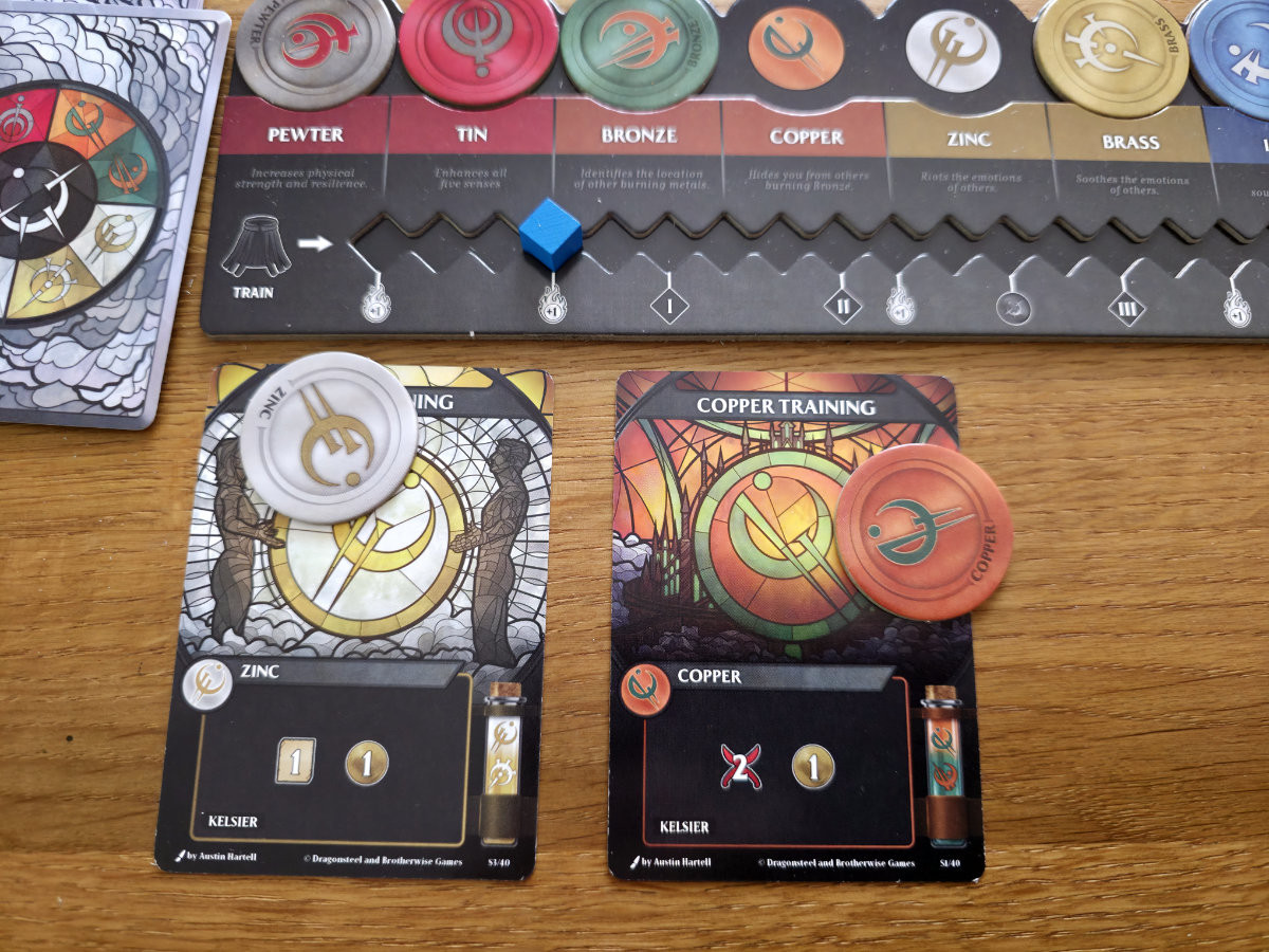 Jeder Spieler startet mit einem Basiskartensatz und Zugriff auf alle acht Metalle, die unterschiedliche Fähigkeiten repräsentieren. Im Laufe des Spiels erweitert man sein Deck durch neue Karten, die mit Metallressourcen aktiviert werden. Die zentrale Mechanik ist das „Schmelzen“ von Metallen – man legt eine Karte aus, platziert den passenden Metallmarker darauf und löst so ihren Effekt aus.