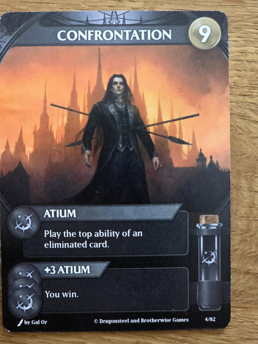 Das Spiel bietet sowohl kompetitive als auch kooperative Modi. In der kompetitiven Variante gewinnt man durch das Erreichen von Missionszielen, das Besiegen aller Gegner oder das Ausspielen von drei Atium-Karten auf der „Konfrontations“-Karte. Im kooperativen Spiel gilt es, gemeinsam den bösen Herrscher zu besiegen oder vier Atium-Karten zu spielen.