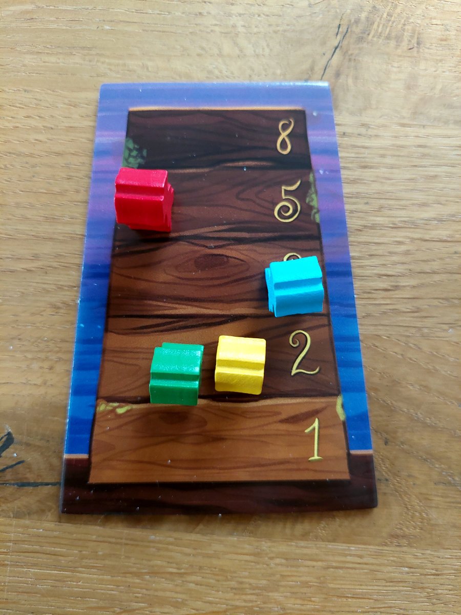 Die Karten sind in verschiedenen Farben gehalten, und je nachdem, welche Farbe man bedient oder welche Trumpfkarte man ausspielt, bewegt sich der eigene Meeple auf der Planke vor oder zurück. Besonders gefürchtet ist die „Skull Queen“ selbst. Wer sie in einem Stich einfängt, zieht sich den Zorn der Seehexen zu und kassiert saftige Strafpunkte. So entsteht ein spannendes Tauziehen zwischen dem Wunsch, Stiche zu vermeiden, und der Notwendigkeit, die eigene Ansage punktgenau zu erfüllen.