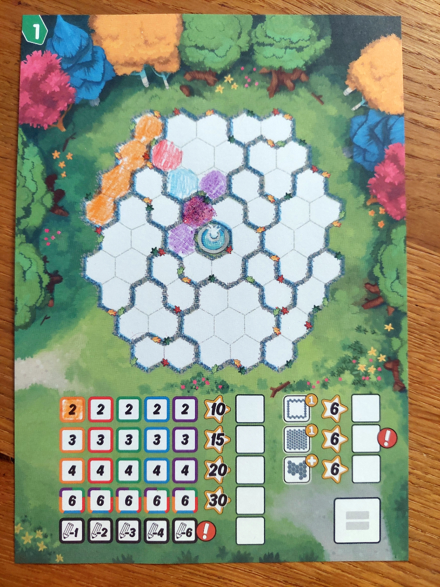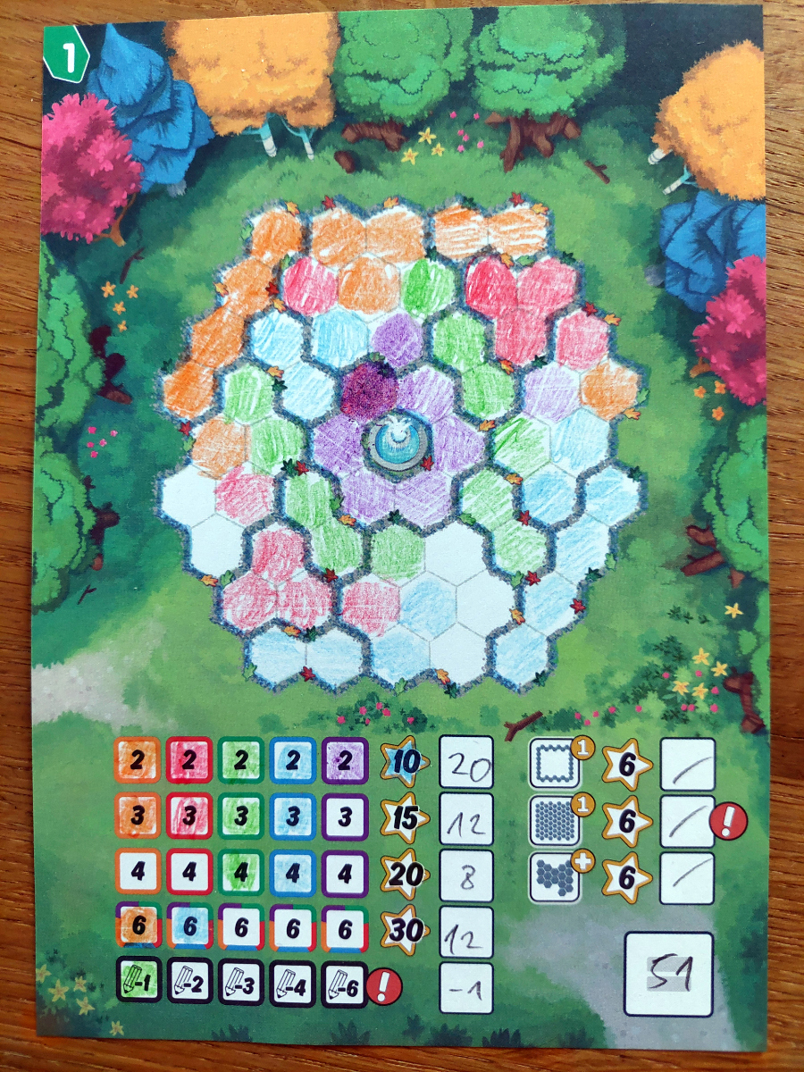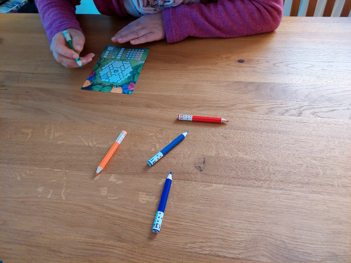 Das Material ist liebevoll gestaltet und die Illustrationen transportieren eine frische, naturverbundene Stimmung, die perfekt zum Thema passt. Dank der einfachen Regeln ist das Spiel schnell erklärt, doch gerade die Wahl des richtigen Stifts sowie die Planung der Farbverteilung bringen eine schöne strategische Tiefe mit sich.
