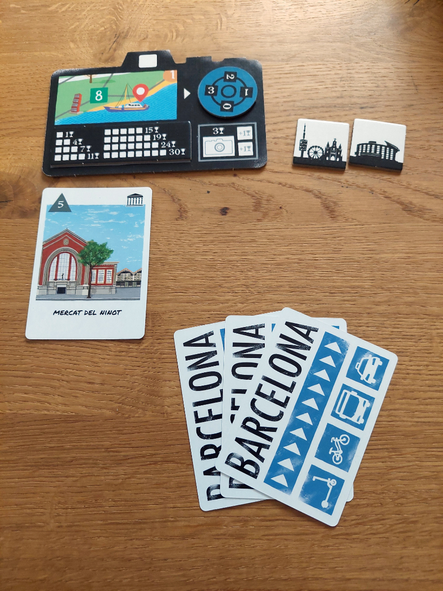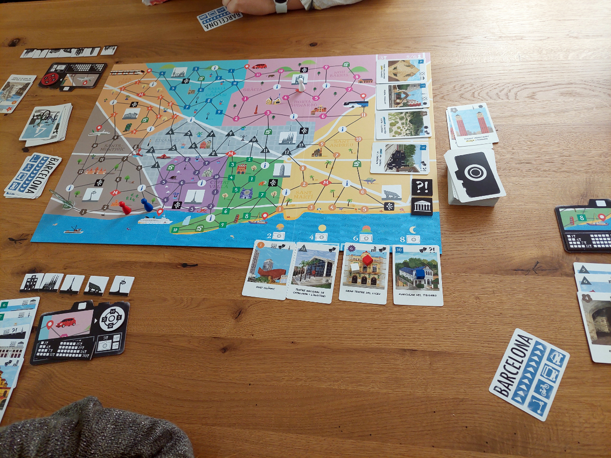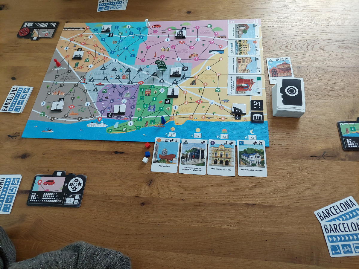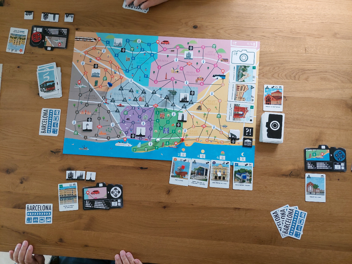 Das Spielbrett zeigt eine stilisierte Karte Barcelonas mit ihren markanten Stadtvierteln und berühmten Wahrzeichen. Jeder Spieler startet mit einem Kameraplättchen und bewegt sich durch die Stadt per Taxi, Bus, Fahrrad oder zu Fuß. Das Ziel ist es, Fotos von Sehenswürdigkeiten zu machen, die den wechselnden Vorgaben der Jury entsprechen. Diese Motive werden durch Karten dargestellt, die bestimmte Anforderungen wie Themen oder Gebäudetypen anzeigen. Dabei ist strategisches Vorgehen gefragt: Wer seinen Weg geschickt plant und rechtzeitig an beliebten Spots ankommt, kann wertvolle Punkte sammeln.