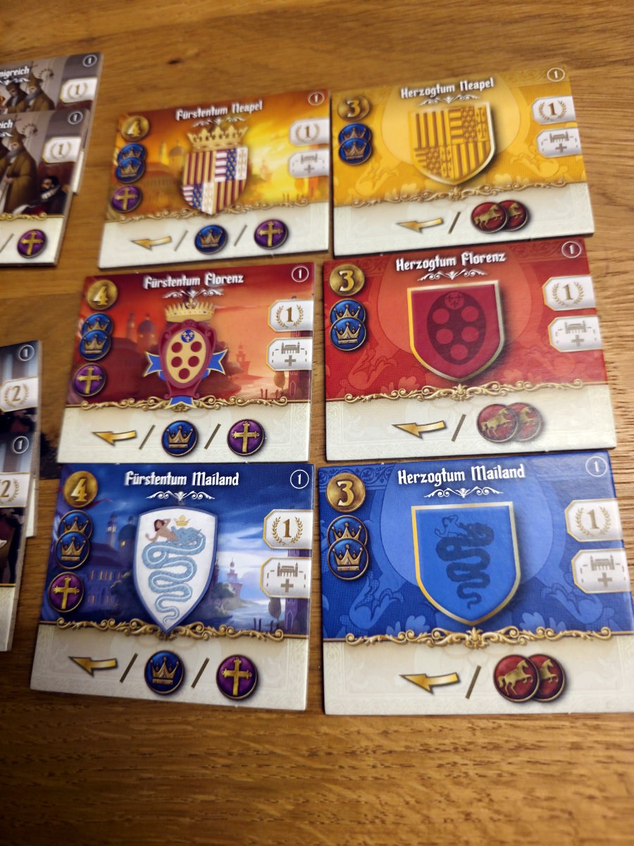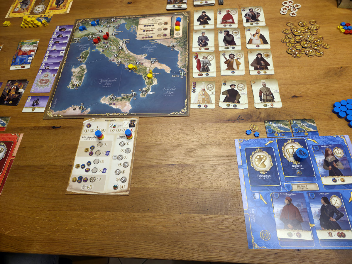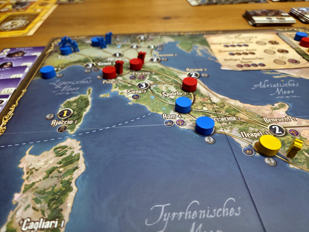 Konflikte um Städte, das Ausspielen von Agenten und das gezielte Blockieren gegnerischer Aktionen sorgen für Spannung und taktische Tiefe. Die asymmetrischen Startbedingungen der historischen Herrscherfamilien tragen zusätzlich zur Vielfalt bei und machen jede Partie einzigartig.