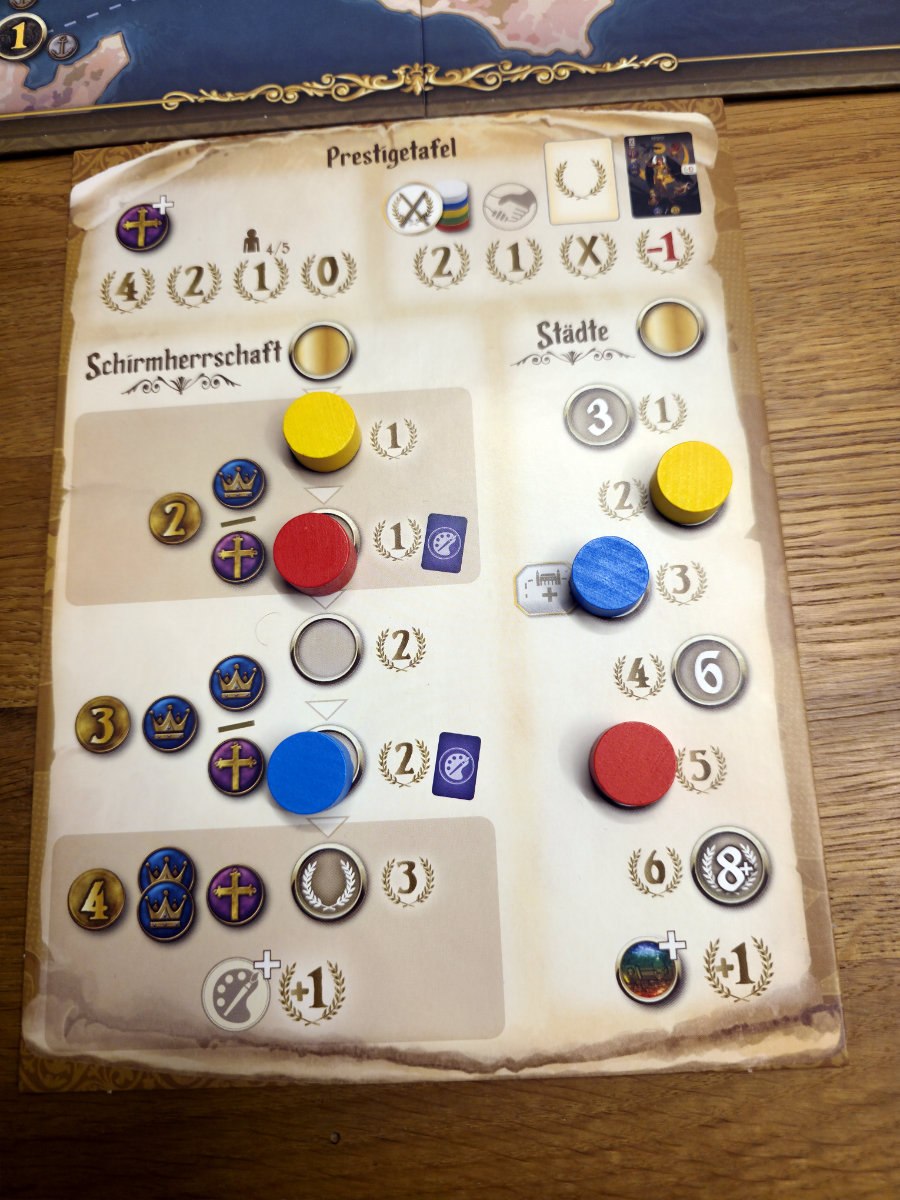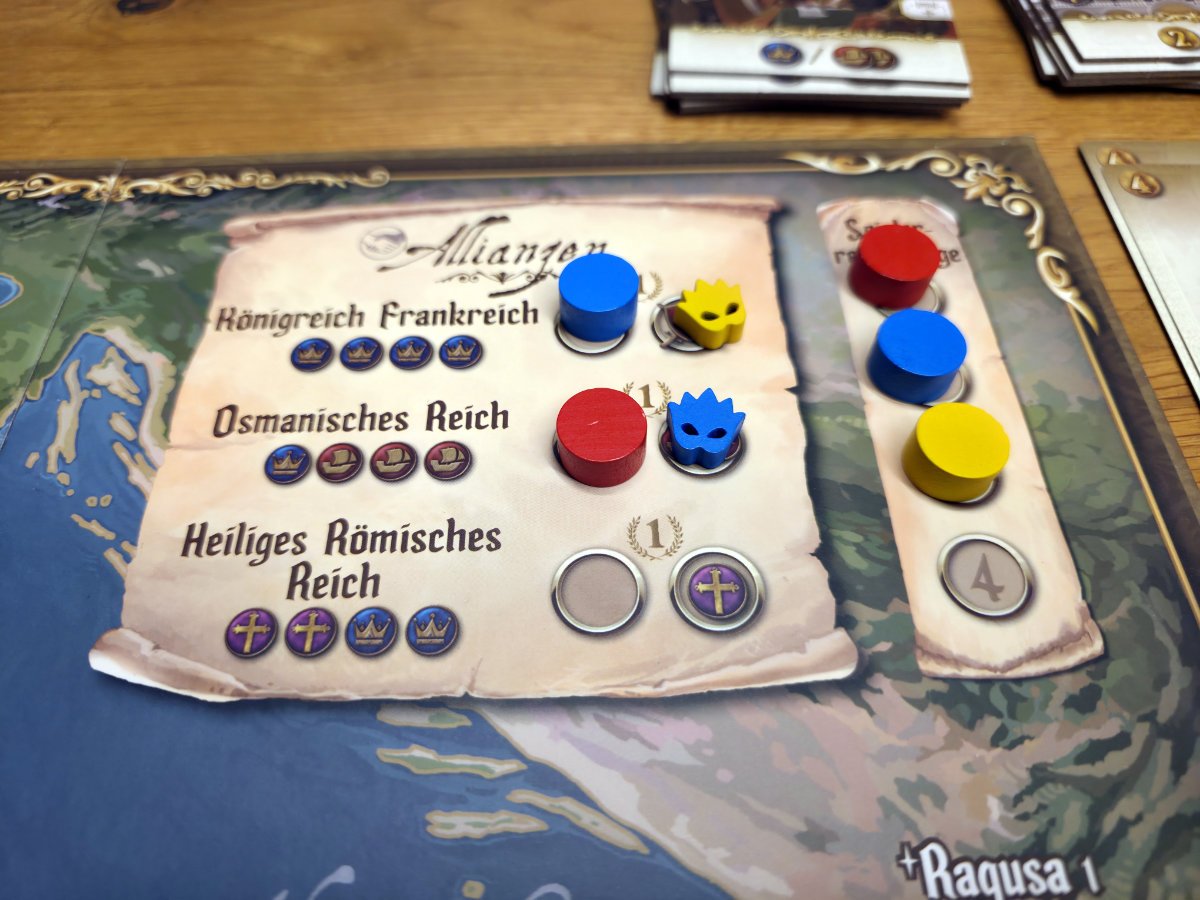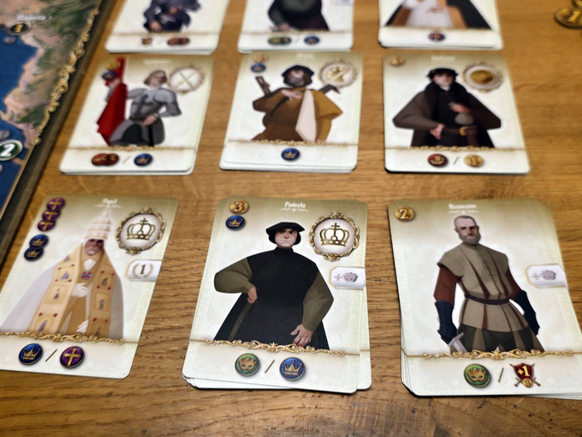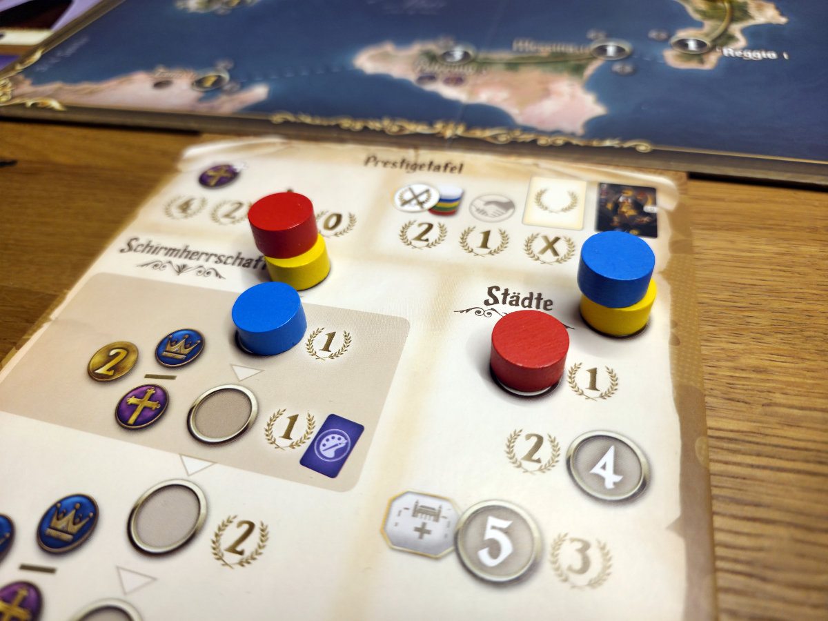 Konflikte um Städte, das Ausspielen von Agenten und das gezielte Blockieren gegnerischer Aktionen sorgen für Spannung und taktische Tiefe. Die asymmetrischen Startbedingungen der historischen Herrscherfamilien tragen zusätzlich zur Vielfalt bei und machen jede Partie einzigartig.