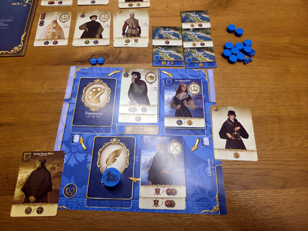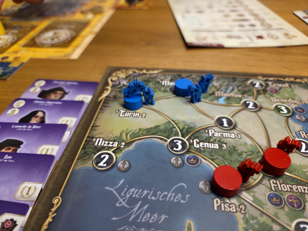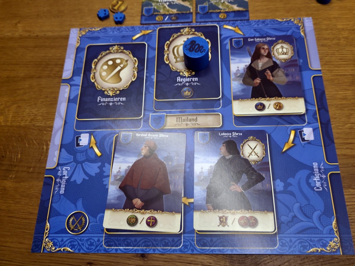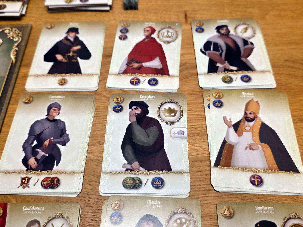Die Spieler stehen vor der Wahl, wie sie ihre Macht ausbauen wollen. Als Schirmherr können sie Gelehrte und Künstler fördern, was Prestige bringt und die kulturelle Vormachtstellung sichert. Wer lieber militärisch agiert, kann Truppen und Agenten einsetzen, um Städte zu kontrollieren und gegnerische Pläne zu durchkreuzen. Alternativ bietet der diplomatische Weg eine subtilere Möglichkeit Einfluss zu gewinnen und Allianzen zu schmieden. Jede dieser Strategien ist valide – und das Spiel fordert dazu auf sich flexibel anzupassen.
