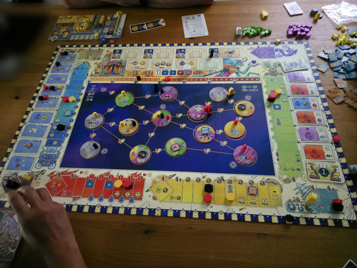 Insgesamt ist Transgalactica ein herausforderndes Strategiespiel, das sowohl Engine-Builder-Fans als auch Liebhaber interaktiver Worker-Placement-Gefechte anspricht. Die Kombination aus stimmungsvollem Thema, variablen Strategien und direkte Interaktion macht jede Partie zu einem einzigartigen Wettrennen um Ruhm und Einfluss in den Weiten des Alls. Wer bereit ist, sich in komplexere Gefilde vorzuwagen, findet hier ein Raumfahrt-Abenteuer, das langfristig motiviert und immer wieder neue Entdeckungen bereithält.
