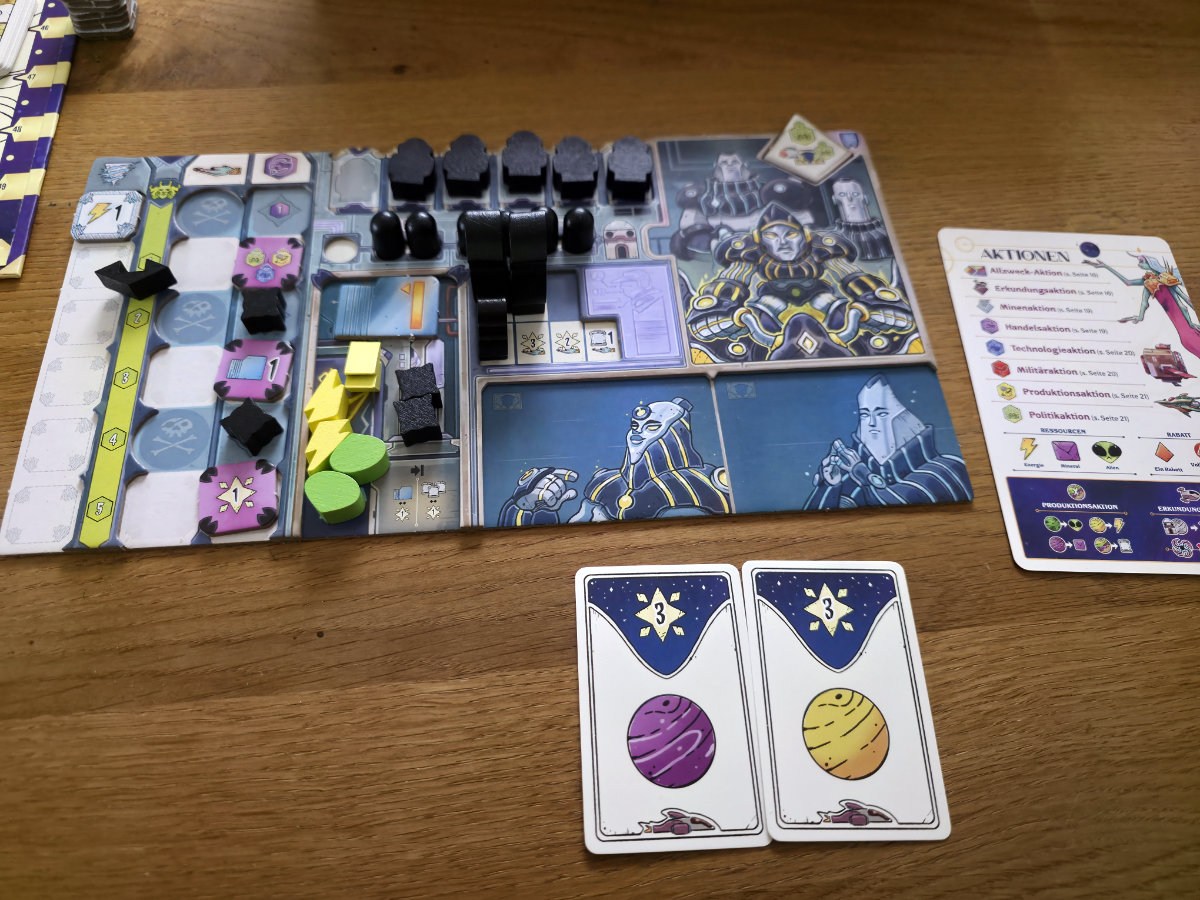 Die Komponenten unterstützen die dichte Interaktion durch ihre atmosphärisch futuristische Gestaltung. Die Fortschritte in den Bereichen Militär, Politik, Produktion und Wissenschaft sind klar nachvollziehbar. Die Materialqualität wirkt robust, und die Symbolik ist trotz der vielen Optionen gut lesbar – ein wichtiger Faktor in einem Spiel moderaten bis hohen Anspruchsgrads, wenn auch hier und da etwas mehr Beispiele für mehr Klarheit sorgen könnten.