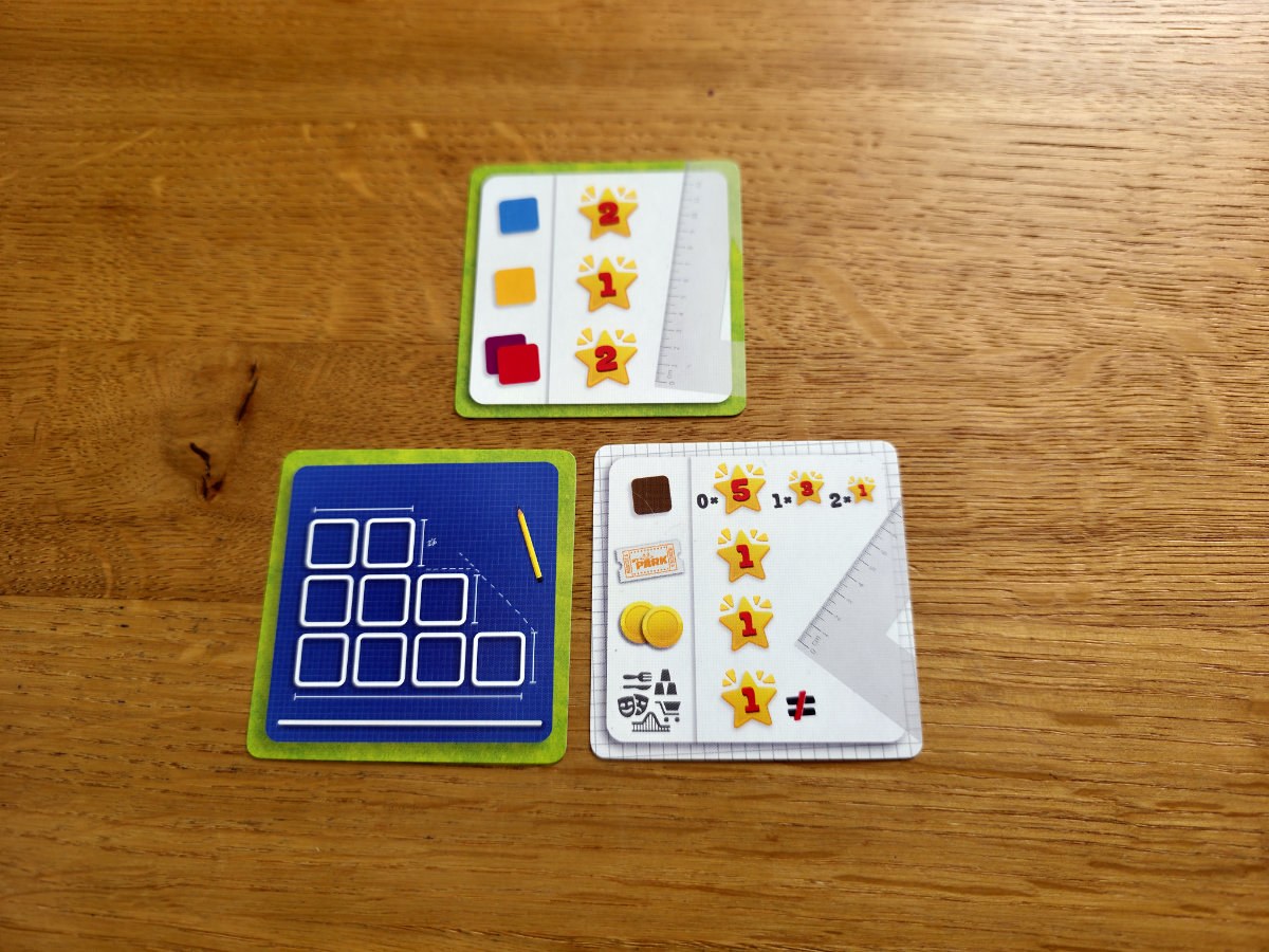 Nach dem Erwerb wird die Attraktion sofort im eigenen Spielbereich platziert. Hier kommt der Legemechanismus ins Spiel. Die Plättchen müssen so angeordnet werden, dass sie in Zahlenfolge (in der Ecke der Karte aufgedruckt) aufsteigend abgelegt werden. Das ist je nach Muster-Vorgabe recht schwierig, wenn man unpassende Karten/Zahlen erhält. Manche Karten bringen Sofortpunkte, andere eröffnen langfristige Strategien, etwa durch Boni für bestimmte Kombinationen.