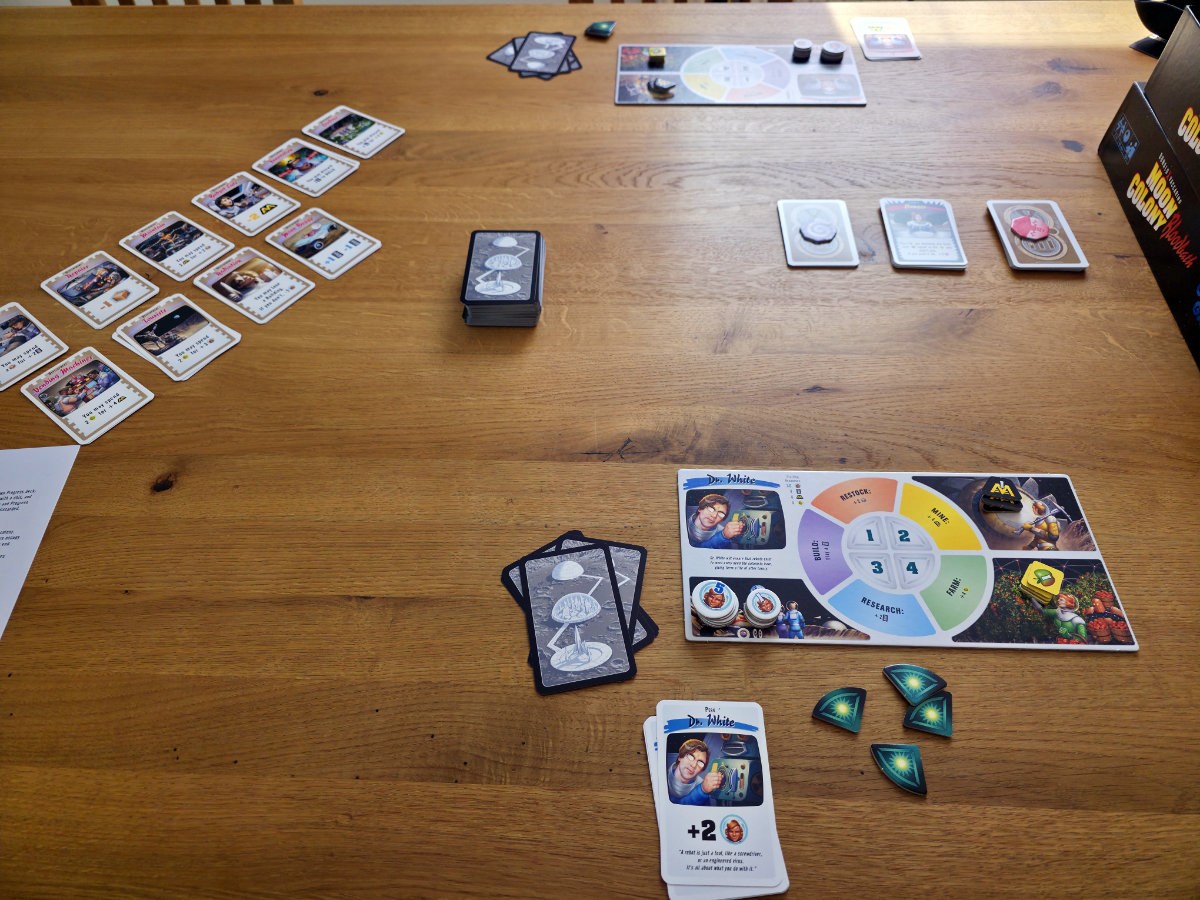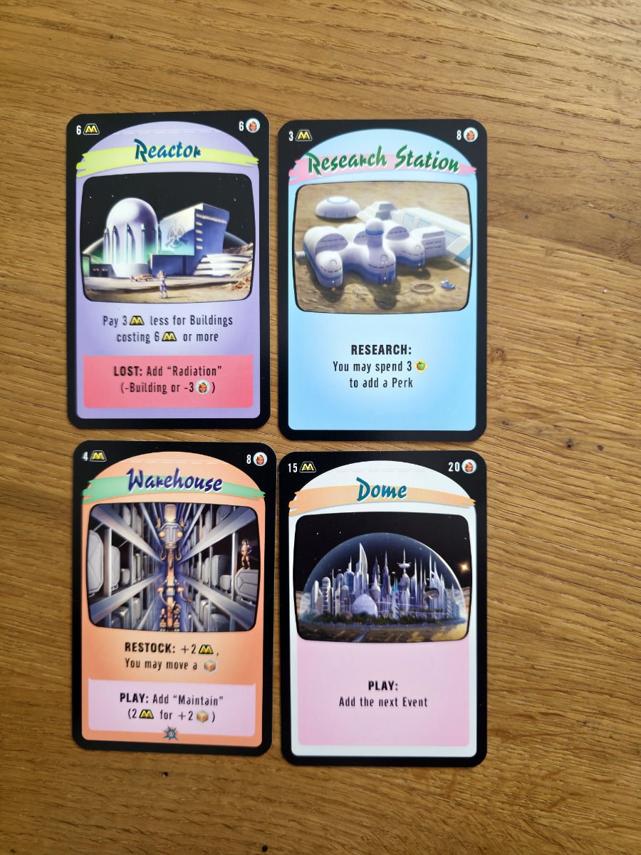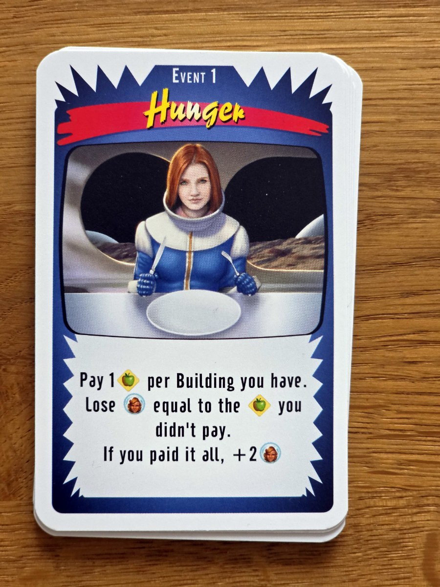 Das Besondere, die Spieler füttern dieses gemeinsame Deck selbst mit neuen Karten – mal mit Vorteilen, die nur ihnen zugutekommen, mal mit Entwicklungen, die alle betreffen. Dadurch entsteht ein faszinierendes Spannungsfeld: Man will seine Engine aufbauen, muss aber gleichzeitig mit den negativen Effekten leben, die man selbst oder andere ins System einspeisen. Das Spiel endet, wenn eine Kolonie keine Überlebenden mehr hat oder der Ereignisstapel aufgebraucht ist. Sieger ist, wer am meisten Menschen retten konnte.
