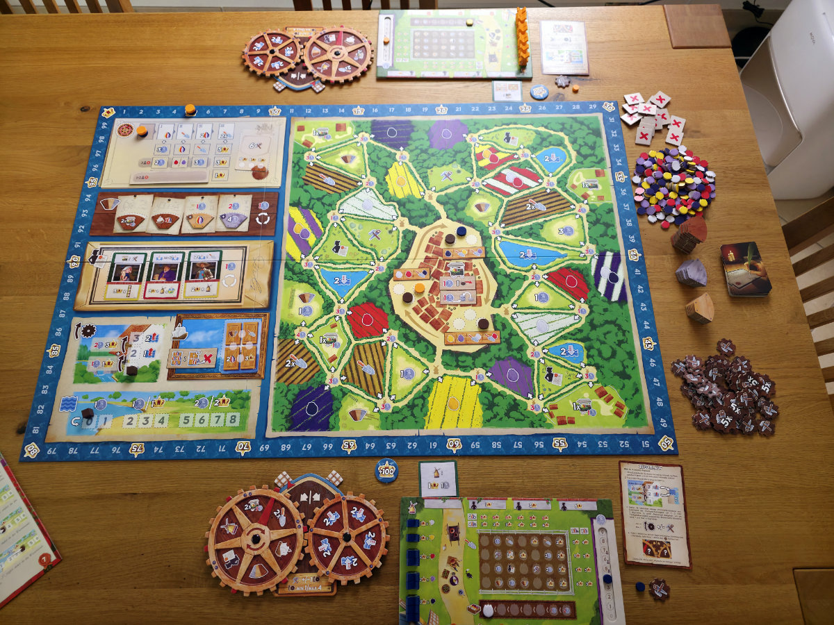 Besonders reizvoll ist, dass das Rondell nicht statisch bleibt. Durch die Aufwertungen verändert sich die Reihenfolge und Stärke der Aktionen, was zu einem dynamischen Spielfluss führt. Die Spieler müssen also nicht nur ihre eigenen Züge optimieren, sondern auch im Blick behalten, welche Optionen den Gegnern in den kommenden Runden offenstehen.