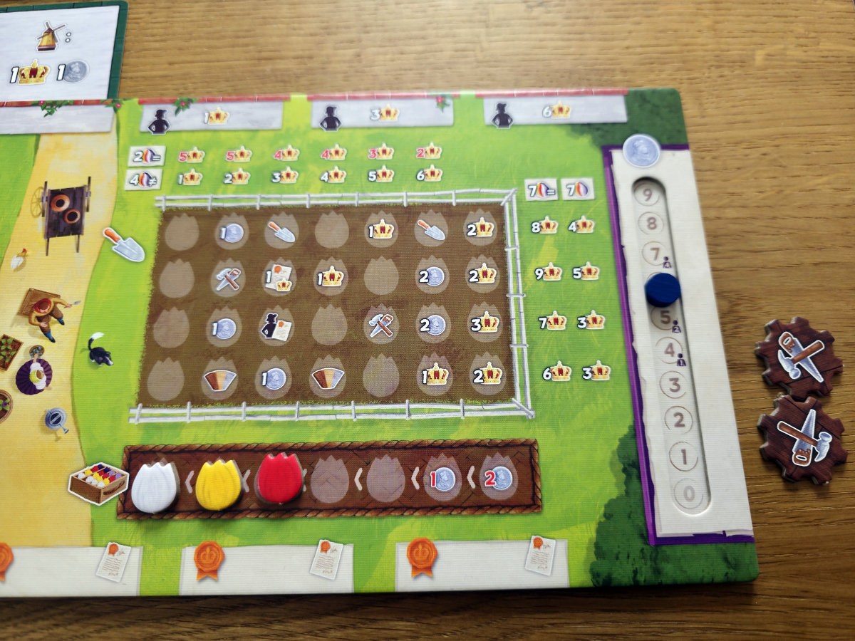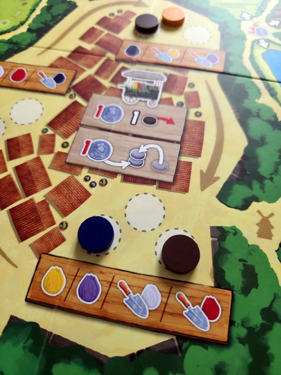 Ein zentrales Element ist das Ressourcenmanagement. Tulpenzwiebeln, Werkzeuge und Geld müssen in Balance gehalten werden, um nicht in einer Runde handlungsunfähig zu sein. Gleichzeitig belohnt das Spiel langfristige Planung. Wer früh in Infrastruktur investiert, kann später deutlich effizienter agieren.