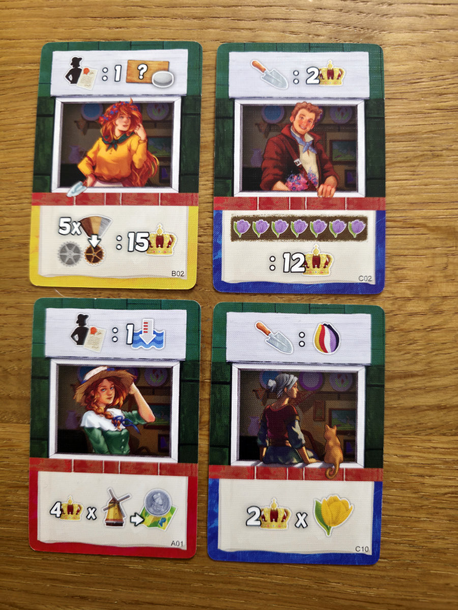 Das Spiel endet nach einer festgelegten Anzahl an Runden, die über ein Kalender-Element gesteuert wird. Am Ende zählen nicht nur erfüllte Aufträge und gesammelte Tulpen, sondern auch bestimmte Endspielboni, etwa für Vielfalt im Tulpenanbau oder für besonders ausgebaute Windmühlen. Optisch überzeugt „WV“ mit hochwertigen Komponenten, wie den Holz-Windmühlen, den farbenfrohe Tulpen, den doppellagigen Spielertableaus und stimmungsvollen Illustrationen.