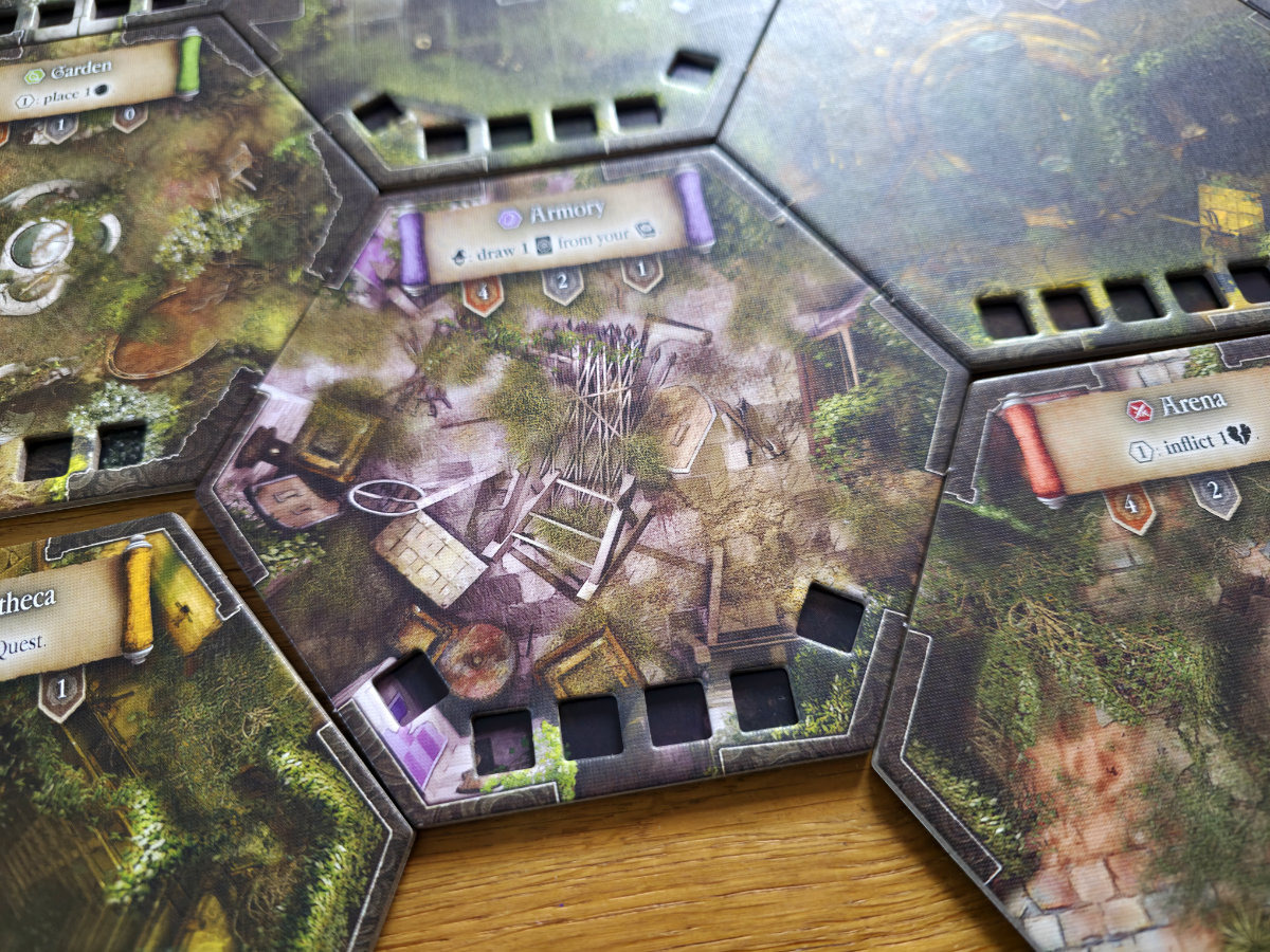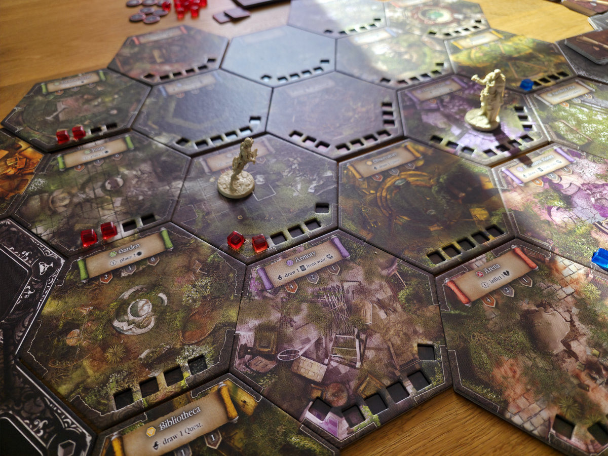 Ein weiterer Unterschied zum Original liegt im modularen Aufbau der Akademie. Während im ersten Teil die Räume festgelegt waren, erlaubt „Rebirth“ eine flexible Gestaltung des Spielfelds, was die Wiederspielbarkeit deutlich erhöht. Auch die grafische Gestaltung wurde überarbeitet. Die Illustrationen sind noch detailreicher, die Miniaturen hochwertiger und die Spielmaterialien insgesamt intuitiver gestaltet. Die Regeln wurden gestrafft, ohne an Tiefe zu verlieren – ein klarer Gewinn für die Zugänglichkeit.