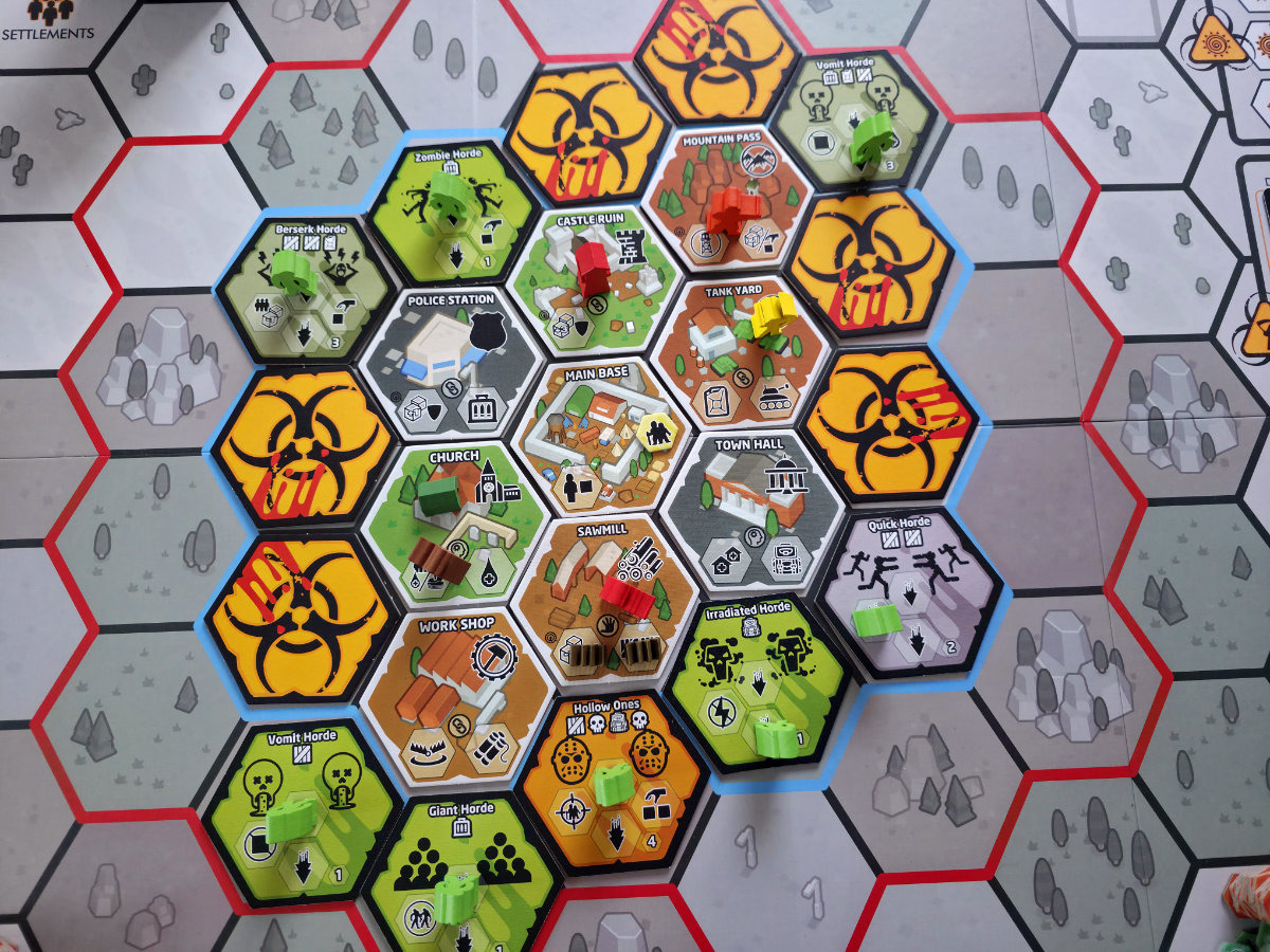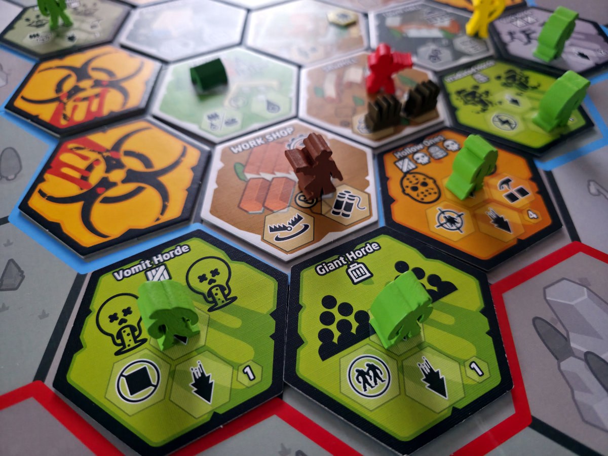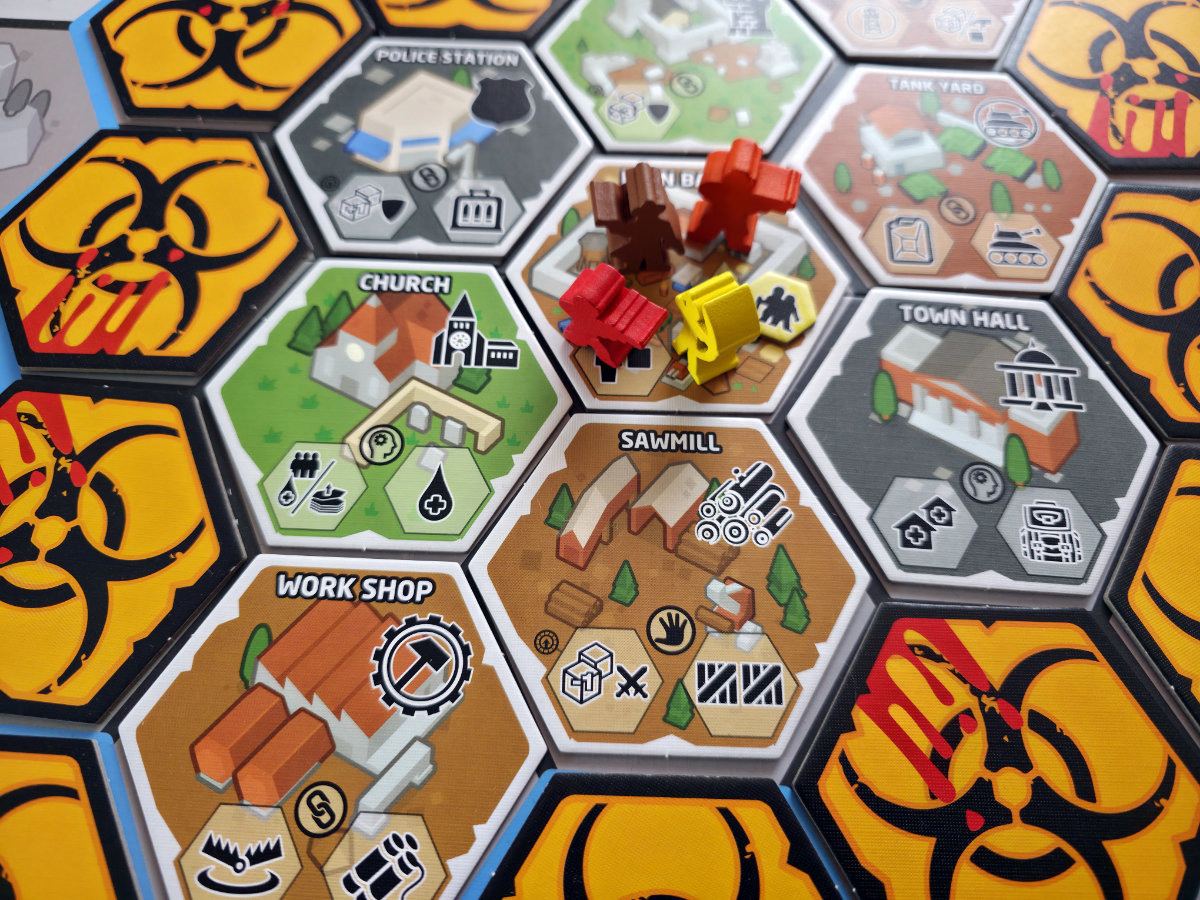 Der Spielablauf folgt einem klaren, aber spannungsgeladenen Ablauf. Zunächst planen die Spieler ihre Züge, bewegen sich durch die Stadt, durchsuchen Gebäude nach Vorräten und versuchen, sichere Zonen zu errichten. Doch jede Aktion hat ihren Preis – sei es durch den Verbrauch knapper Ressourcen, das Risiko einer Infektion oder das Heraufbeschwören neuer Gefahren. Im Anschluss schlägt das Spiel zurück. Infektionsmarker breiten sich aus, neue Bedrohungen tauchen auf, und die Lage spitzt sich weiter zu. Dieser stetige Wechsel zwischen Hoffnung und Rückschlag erzeugt eine dichte Atmosphäre, die an Filme bzw. Serien wie „28 Days Later“ oder „The Walking Dead“ erinnert.