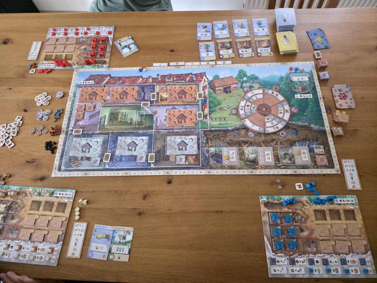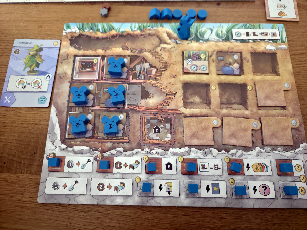 Jede Runde wählen die Spieler Aktionen, die ihnen helfen, „ihre Farm“ zu erweitern. Dabei geht es nicht nur um schnödes Ressourcenmanagement – nein, hier wird mit Artefakten der Menschen experimentiert, mit Mäusen verhandelt und unterirdische Behausungen ausgebaut. Die Ratten sind nicht nur clever, sie sind auch ambitioniert.