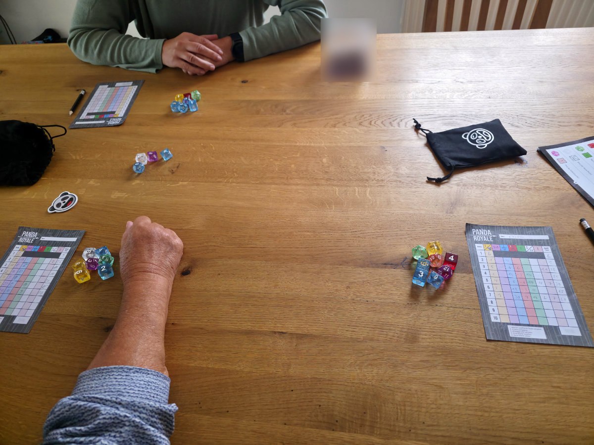 Review-Fazit zu „Panda Royale“, einem farbefrohen Würfelspiel.