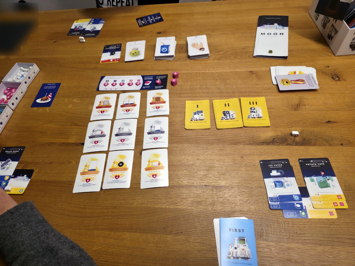 Insgesamt ist „Moon“ ein rundum gelungenes Spiel, das durch seine Mischung aus Drafting, Engine-Building und Interaktion überzeugt. Es bietet genug Tiefe für Vielspieler, bleibt aber durch seine charmante Präsentation und klare Struktur auch für Gelegenheitsspieler interessant. Wer Freude an strategischen Kartenspielen hat und sich für futuristische Themen begeistern kann, wird hier eine echte Perle entdecken.