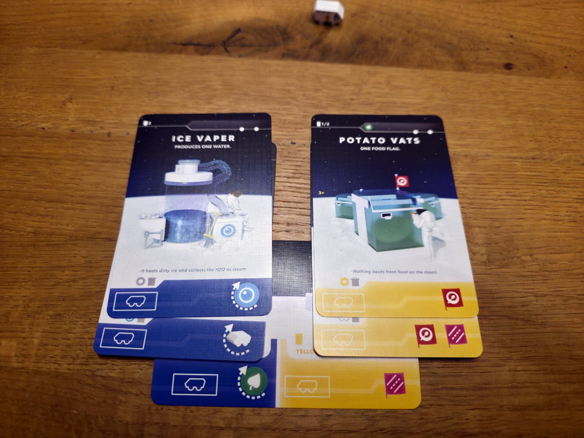 Der Spielablauf gliedert sich in drei Epochen, die jeweils durch einen Drafting-Prozess eingeleitet werden. Zu Beginn jeder Epoche erhalten die Spieler eine Hand voll Karten, aus denen sie jeweils eine auswählen und den Rest weitergeben – ein klassisches „Pick & Pass“-System, das durch die Vielfalt und Mehrfachnutzung der Karten besonders spannend wird. Die Karten repräsentieren verschiedene Gebäude, Einrichtungen und Funktionen, die auf der eigenen Mondbasis errichtet werden können. Dabei geht es nicht nur um das Sammeln von Ressourcen, sondern auch um das geschickte Kombinieren von Karten, um Synergien zu schaffen und mächtige Effekte auszulösen.