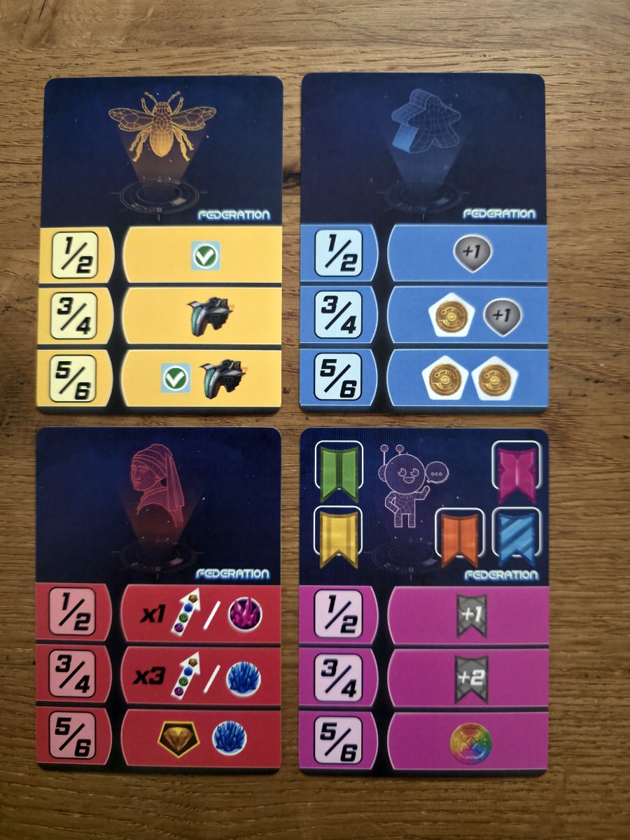 Thematisch gelingt der Erweiterung ein starker Spagat. Während das Grundspiel die glänzenden Hallen der Föderation und ihre politischen Intrigen inszeniert, zieht „Piracy“ die Spieler in die dunklen Gassen der Raumhäfen, wo Schmuggler, zwielichtige Deals und riskante Allianzen locken. Die neuen Module fühlen sich nicht wie ein Fremdkörper an, sondern wie die logische Schattenseite einer galaktischen Föderation – denn wo Macht und Reichtum sind, sind Piraten nie weit.