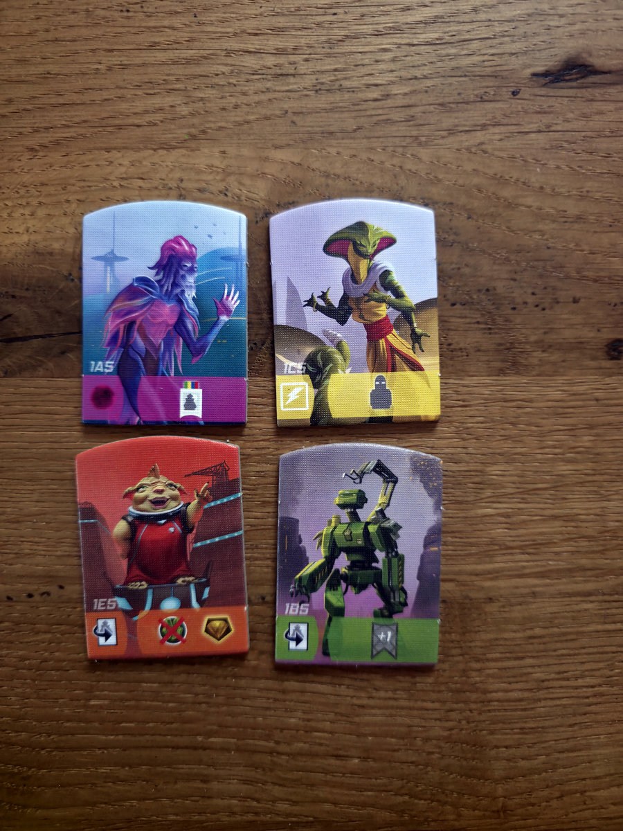 Das zweite Modul, die KI-Assistenten, bringt eine subtilere, aber nicht minder reizvolle Ebene ins Spiel. Jeder Spieler kann einen individuellen Assistenten mit eigenem Bonus rekrutieren. Ein Würfel, der sonst im Senat platziert würde, kann stattdessen auf die KI-Karte gelegt werden, um sofortige Vorteile zu aktivieren – von Ressourcen über Einfluss bis hin zu taktischen Boni. Diese Wahl zwischen politischem Gewicht im Senat und kurzfristigen Vorteilen durch die KI sorgt für zusätzliche Spannung und erlaubt es, die eigene Strategie noch stärker zu personalisieren.