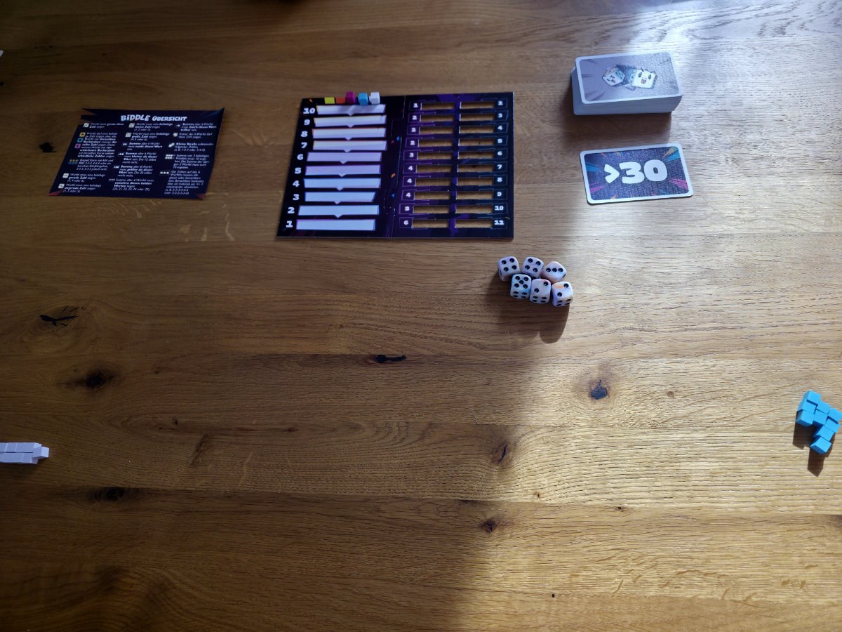 Das Ergebnis ist ein flotter Mix aus Bluff, Würfelglück und taktischem Einschätzen, der in knapp 30 Minuten für reichlich Gelächter sorgt. „Biddle“ ist damit ein Spiel, das zeigt: Wer wagt, gewinnt – aber nur, wenn die Würfel mitspielen.