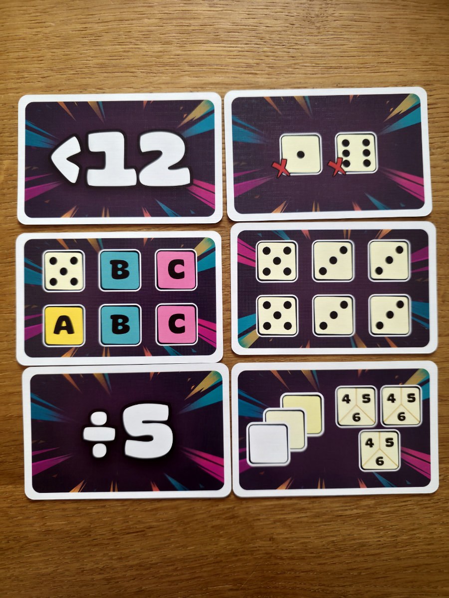 Ein quirliges Würfel-Bietspiel, bei dem man ständig zwischen Größenwahn und Demut schwankt. Der Ablauf ist so simpel wie fies. Auf der Biettafel gibt jeder an, in wie vielen Würfen (zwischen 1 und 10) er glaubt – mit den 6 Würfeln -, die ausliegende Aufgabenkarte (z.B. exakt eine 30 zu erreichen, oder dreimal die 3 und dreimal die 4) zu meistern. Klingt nach Mutprobe – und genau das ist es auch. Wer zu hoch pokert, blamiert sich; wer zu vorsichtig ist, geht leer aus.